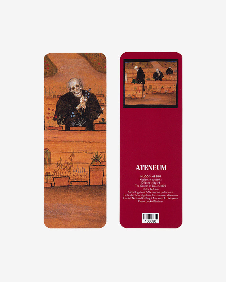 Hugo Simbergin rakastettu klassikkoteos Kuoleman puutarha lukeutuu Museoshopin suosituimpiin tuoteaiheisiin. Siinä kuoleman hahmo esittäytyy lempeänä, mihin todennäköisesti perustuu teoksen viehätys. ”Paikka, minne sielut joutuvat ennen taivaaseen pääsyään” on taiteilija kirjoittanut erään teosversion taustapuolelle. Kuoleman puutarhassa sielut odottavat ylösnousemusta. Kuolema antaa vettä tarvitseville ja halaa yksinäisiä.