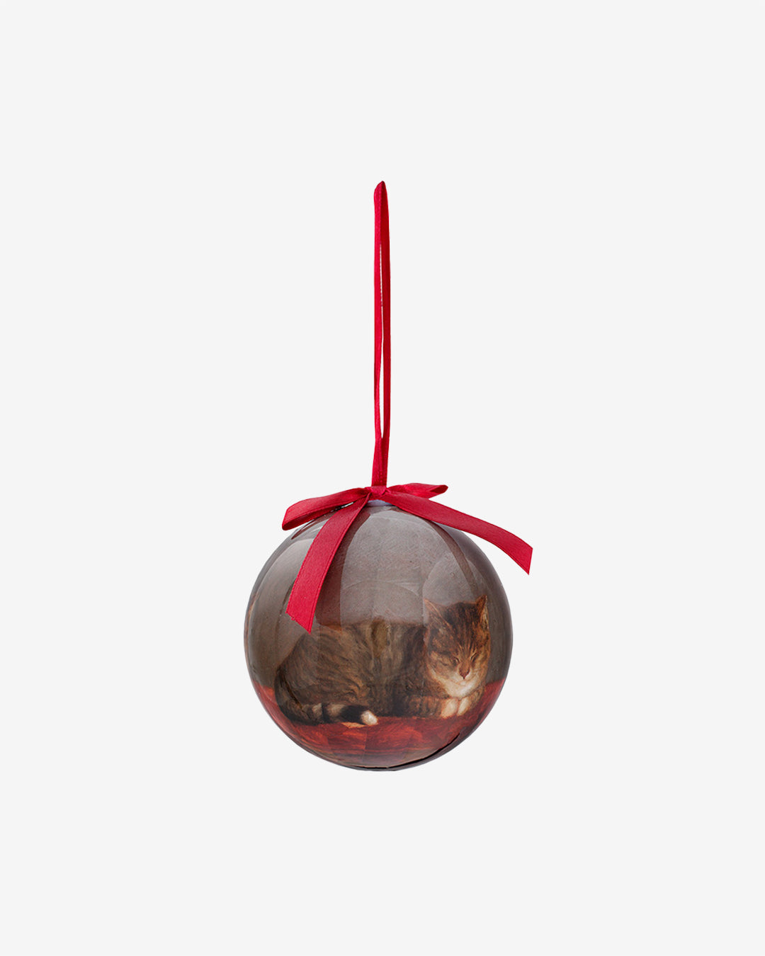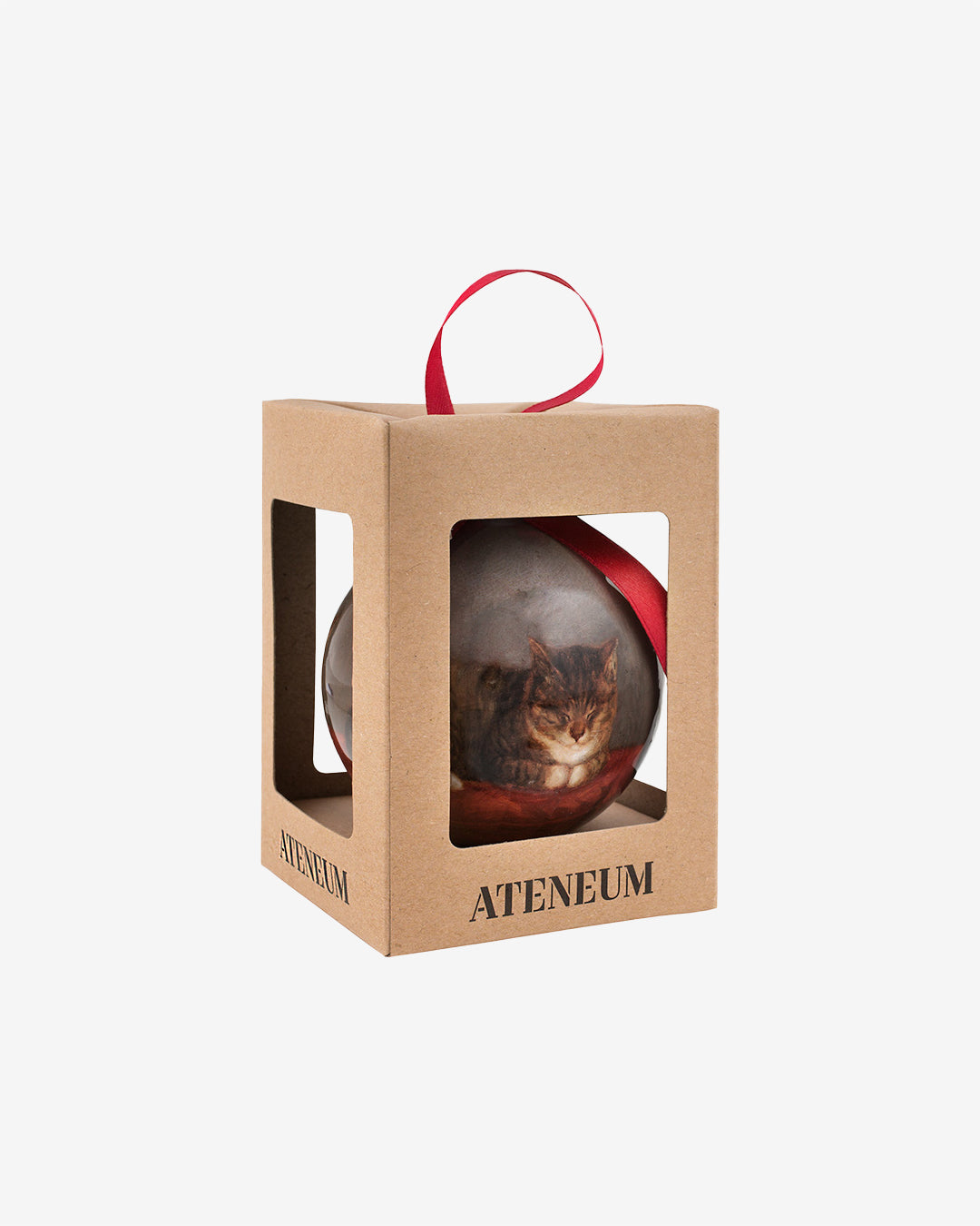 Loihdi joulutunnelmaa viehättävällä Makaava kissa, Mosse -joulupallolla! Suositut taideaiheiset joulupallomme sopivat osaksi kuusenkoristeiden kokoelmaa tai yksittäiseksi somisteeksi. Kaunis joulupallo on kiva idea myös taiteen ystävän pikkujoulupakettiin. Kierrätysmuovista valmistetussa pallossa on teoskuva Maria Wiikin maalauksesta Makaava kissa, Mosse. Joulupallo on pakattu tyylikkäseen pahvirasiaan.