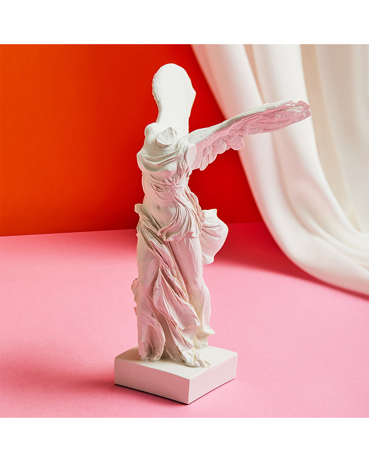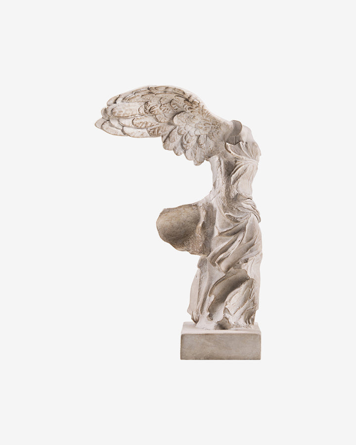 Käsinpatinoitu pienoisjäljennös Victory of Samothrace -veistoksesta on upea katseenvangitsija kirjahyllyyn tai sivupöydälle. Alkuperäinen, Kreikan Samothrákin saarelta löydetty marmoriveistos on esillä Pariisin Louvressa. Yksityiskohtaisen jäljennöksen muotti on valmistettu 3D-tekniikkaa hyödyntäen.