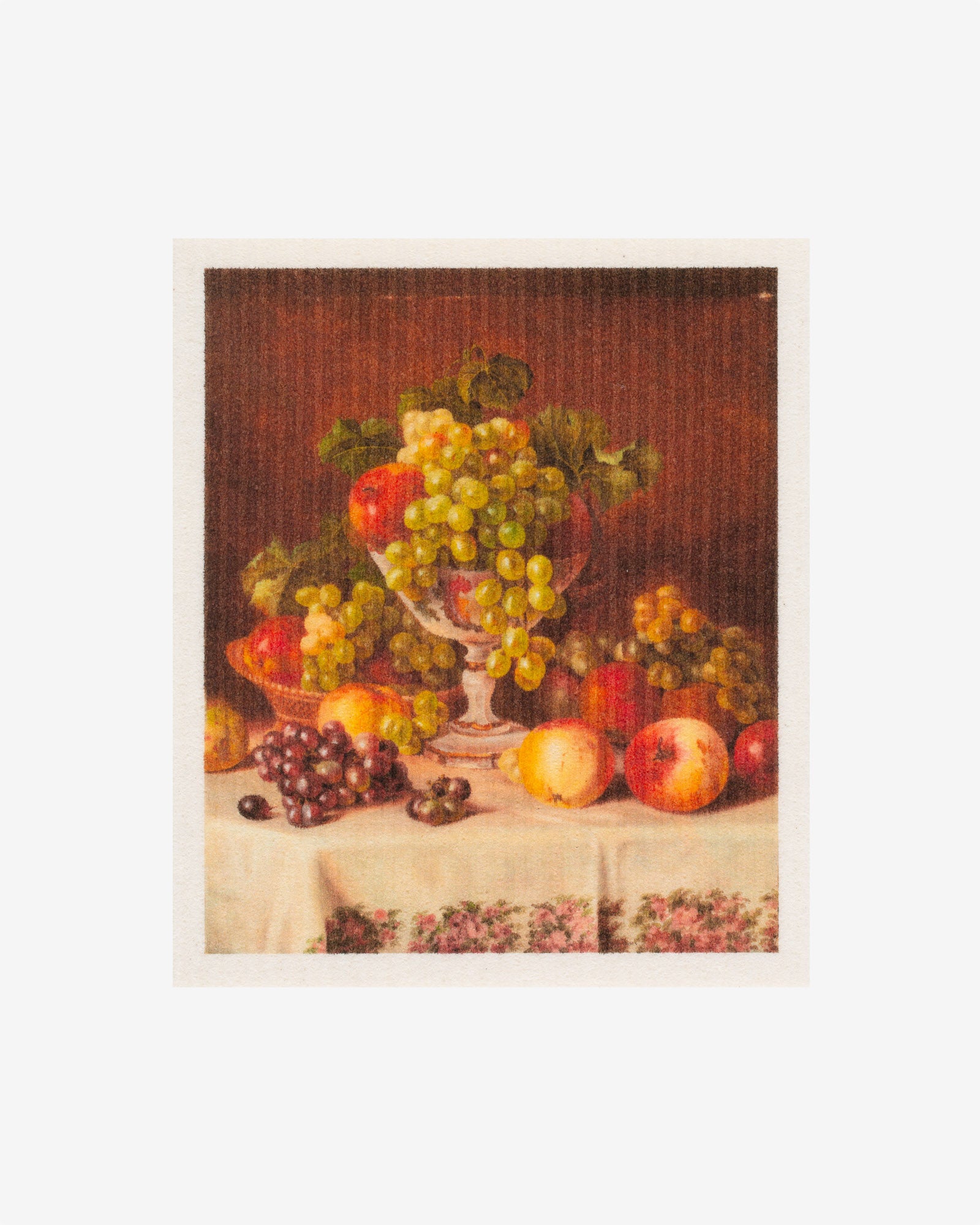 Piristä arkea ja siivouspäivää Hedelmäasetelma-tiskirätillä! Kansallisgallerian kokoelman teokset ilahduttavat ympäristöystävällisistä materiaaleista valmistetuissa tiskiräteissä, valitse sesonkiin ja kodin sävyihin sopiva. Teoskuva Magnus von Wrightin maalauksesta Hedelmäasetelma on painettu tuotteeseen Suomessa.