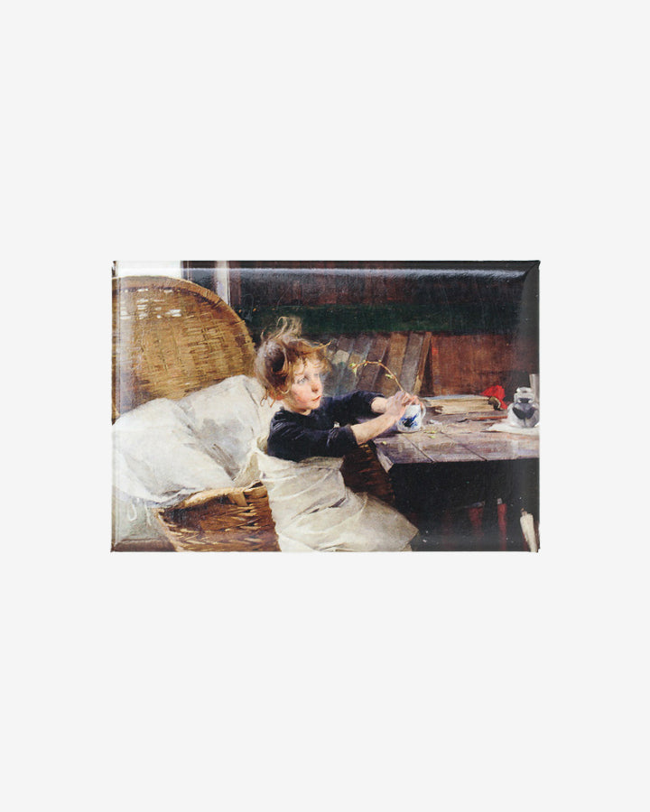 Magneetti on näyttely- ja matkamuistojen klassikko! Yllätä taiteen ystävä pienellä lahjalla tai kokoa magneeteista oma galleria jääkaapin oveen. Magneetissa on teoskuva Helene Schjerfbeckin maalauksesta Toipilas.