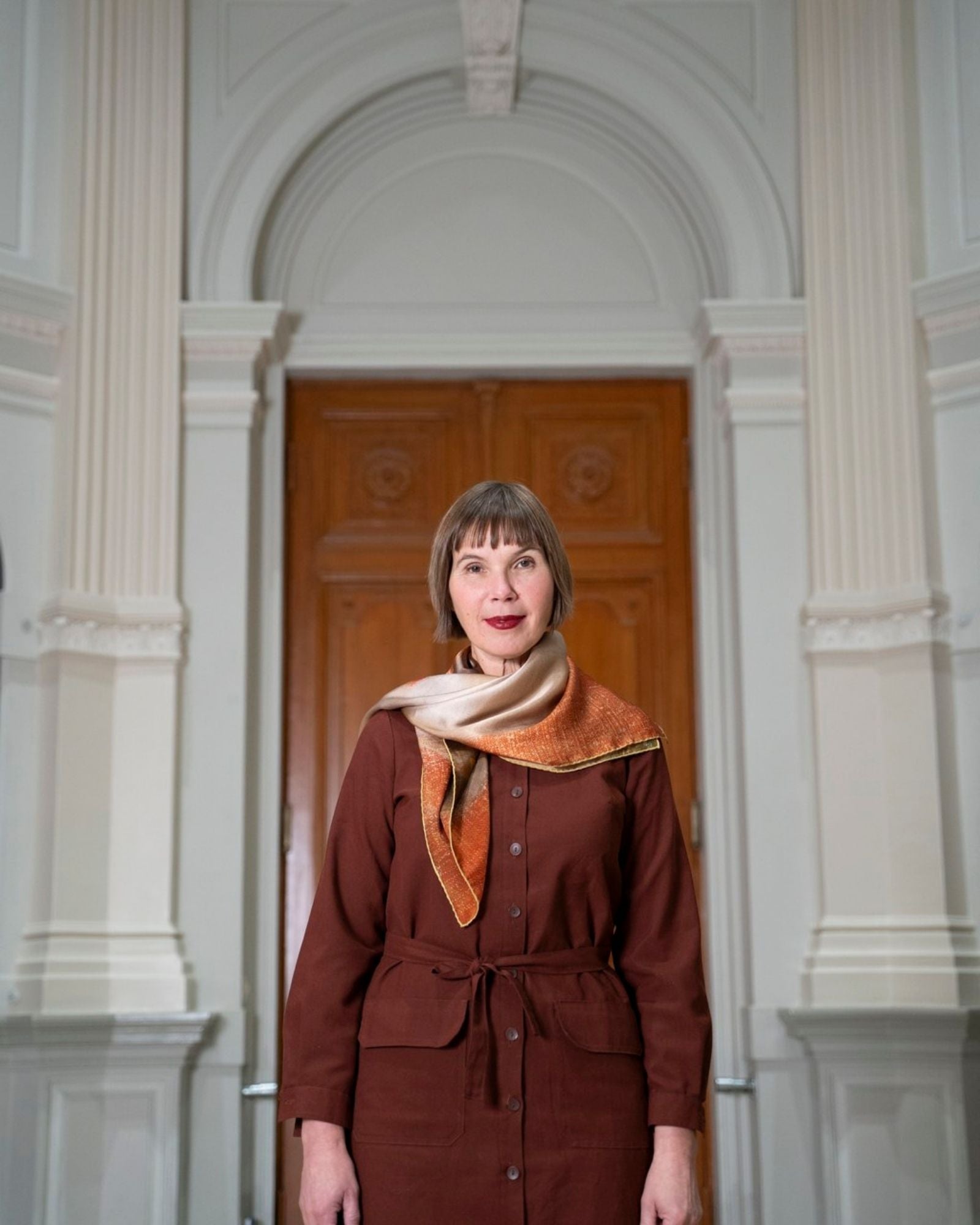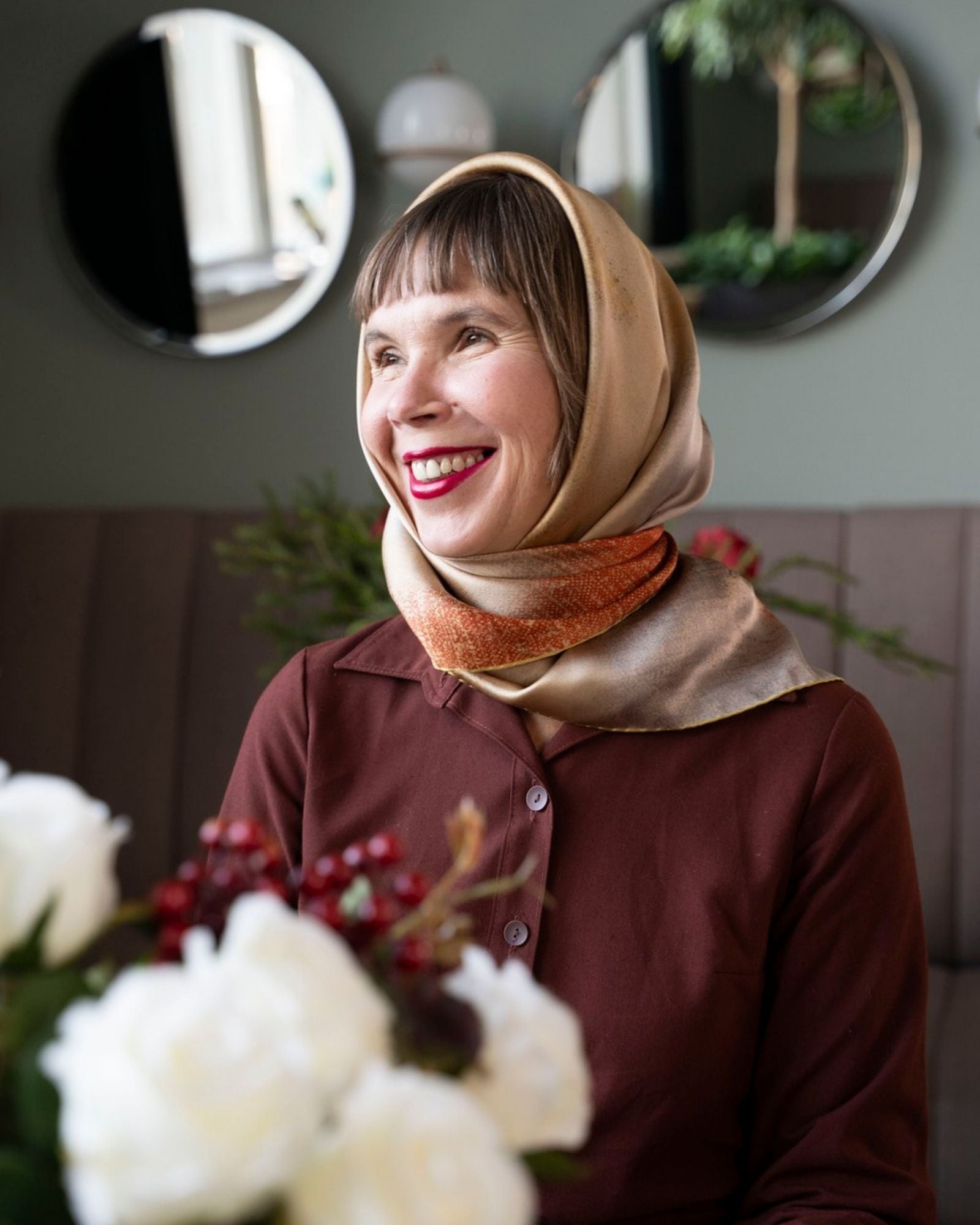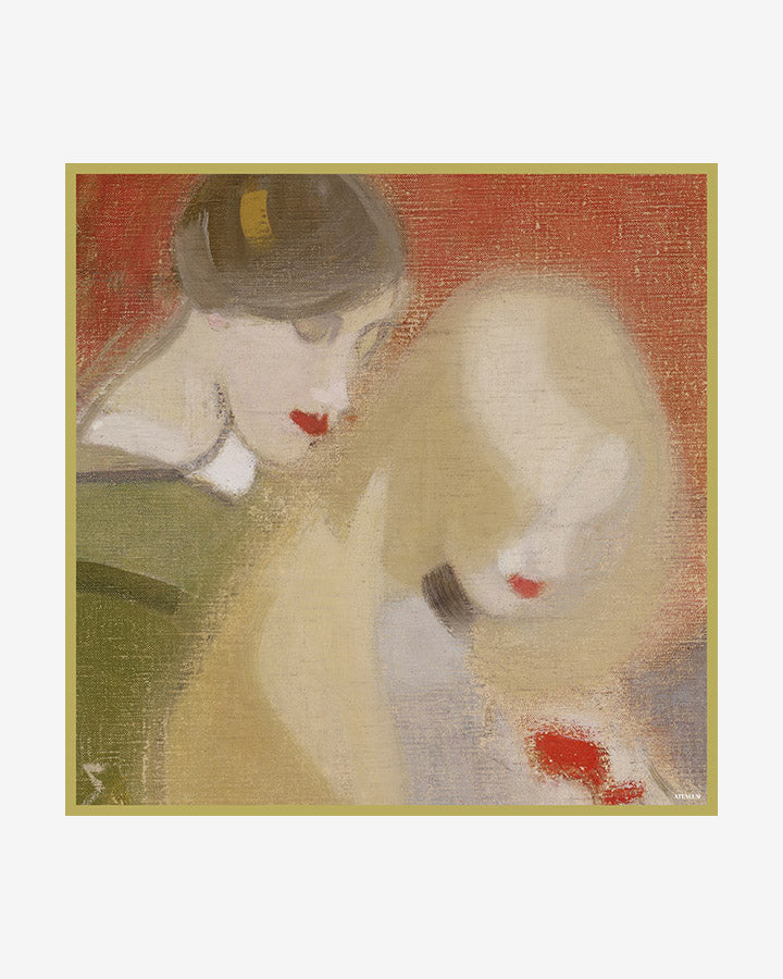 Lisää asuusi ripaus luksusta Perhekoru-silkkihuivilla! Viehättävä huivi on myös nappivalinta tyylitietoisen taiteen ystävän lahjapakettiin. Silkkihuivissa on käsintehdyt päärmeet ja digipainettu kuva Helene Schjerfbeckin teoksesta Perhekoru.