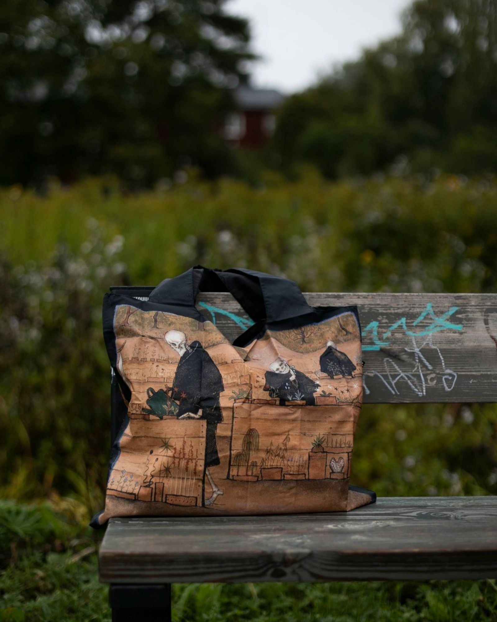 Kuljeta ostoksesi näyttävässä Kuoleman puutarha -kassissa! Käytännölliset ja tyylikkäät Loqi-kassit ovat vettähylkiviä ja kestävät jopa 20 kg:n painon. Kassi on pakattu pieneen pussukkaan, joka sujahtaa kätevästi käsilaukkuun, reppuun tai vaikka takintaskuun. Kassissa on teoskuva Hugo Simbergin teoksesta Kuoleman puutarha.