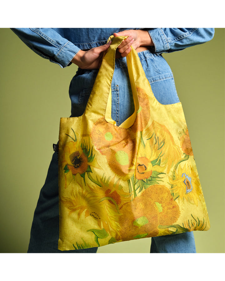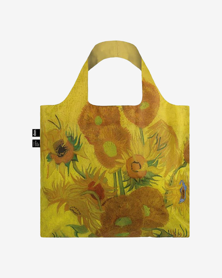 Kuljeta ostoksesi pirteässä Auringonkukkia-kassissa! Käytännölliset ja tyylikkäät Loqi-kassit ovat vettähylkiviä ja kestävät jopa 20 kg:n painon. Kassi on pakattu pieneen pussukkaan, joka sujahtaa kätevästi käsilaukkuun, reppuun tai vaikka takintaskuun. Kassissa on teoskuva Vincent van Goghin maalauksesta Sunflowers.