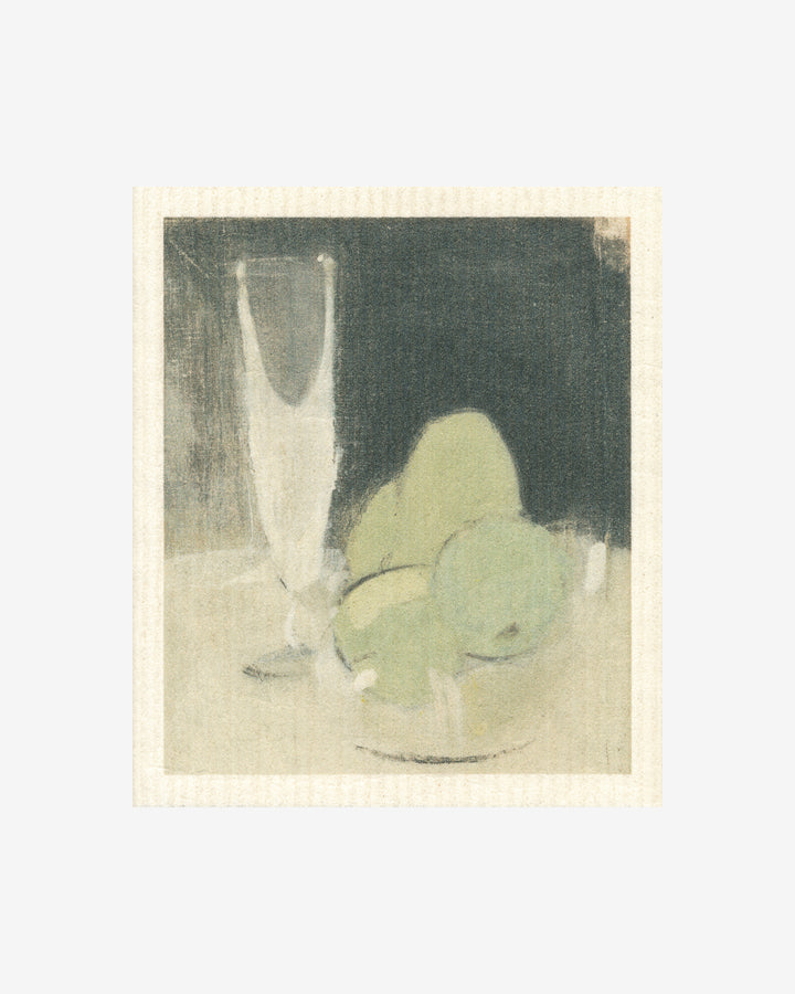 Piristä arkea ja siivouspäivää Vihreät omenat ja samppanjalasi -tiskirätillä! Ateneumin kokoelmien klassikot ilahduttavat ympäristöystävällisistä materiaaleista valmistetuissa tiskiräteissä, valitse sesonkiin ja kodin sävyihin sopiva. Teoskuva Helene Schjerfbeckin maalauksesta Vihreät omenat ja samppanjalasi on painettu tuotteeseen Suomessa.