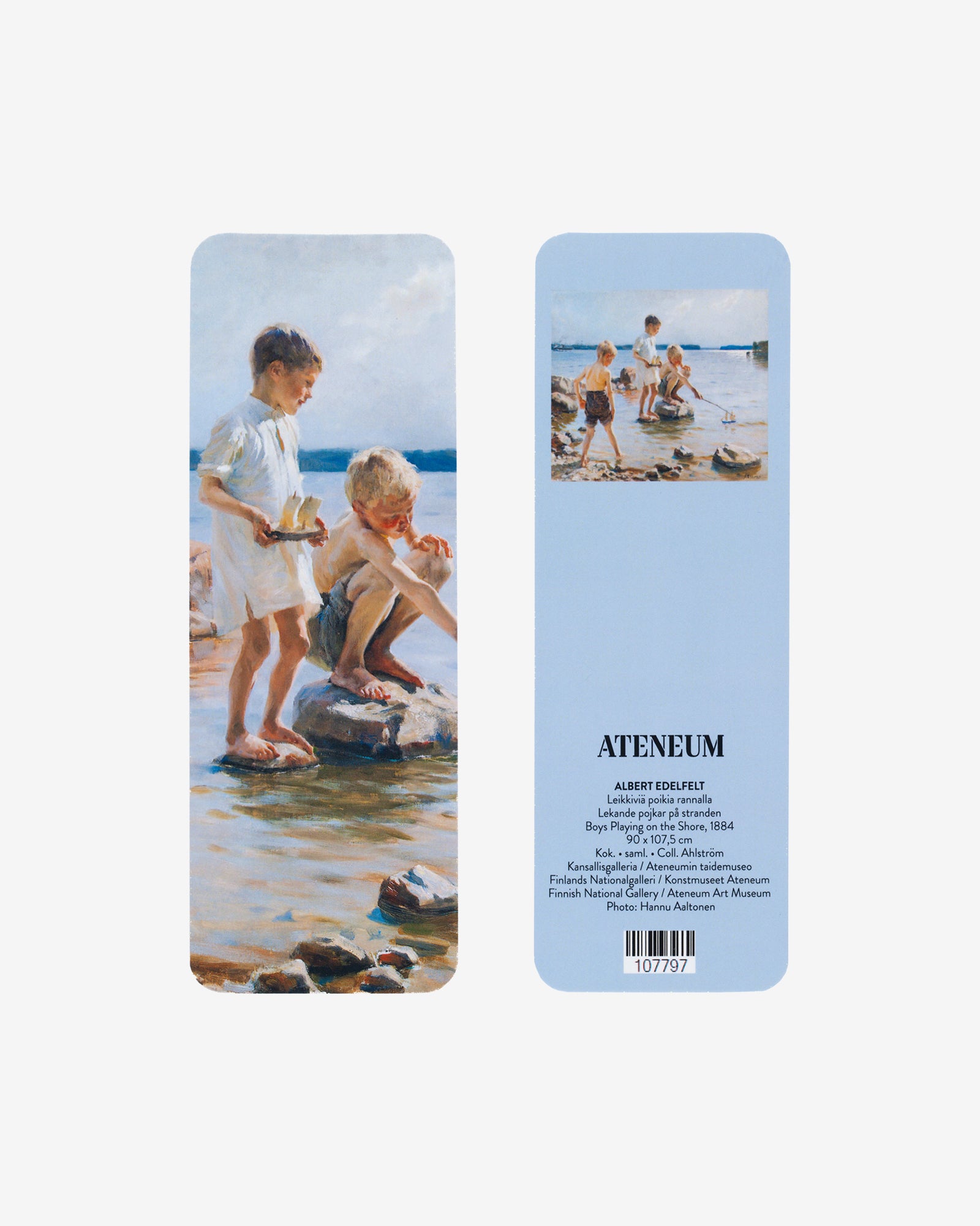 Käytä Leikkiviä poikia rannalla -kirjanmerkkiä ja jatka lukuhetkeä myöhemmin! Teoskuva Albert Edelfeltin maalauksesta Leikkiviä poikia rannalla ilahduttaa aina avatessasi kirjan.