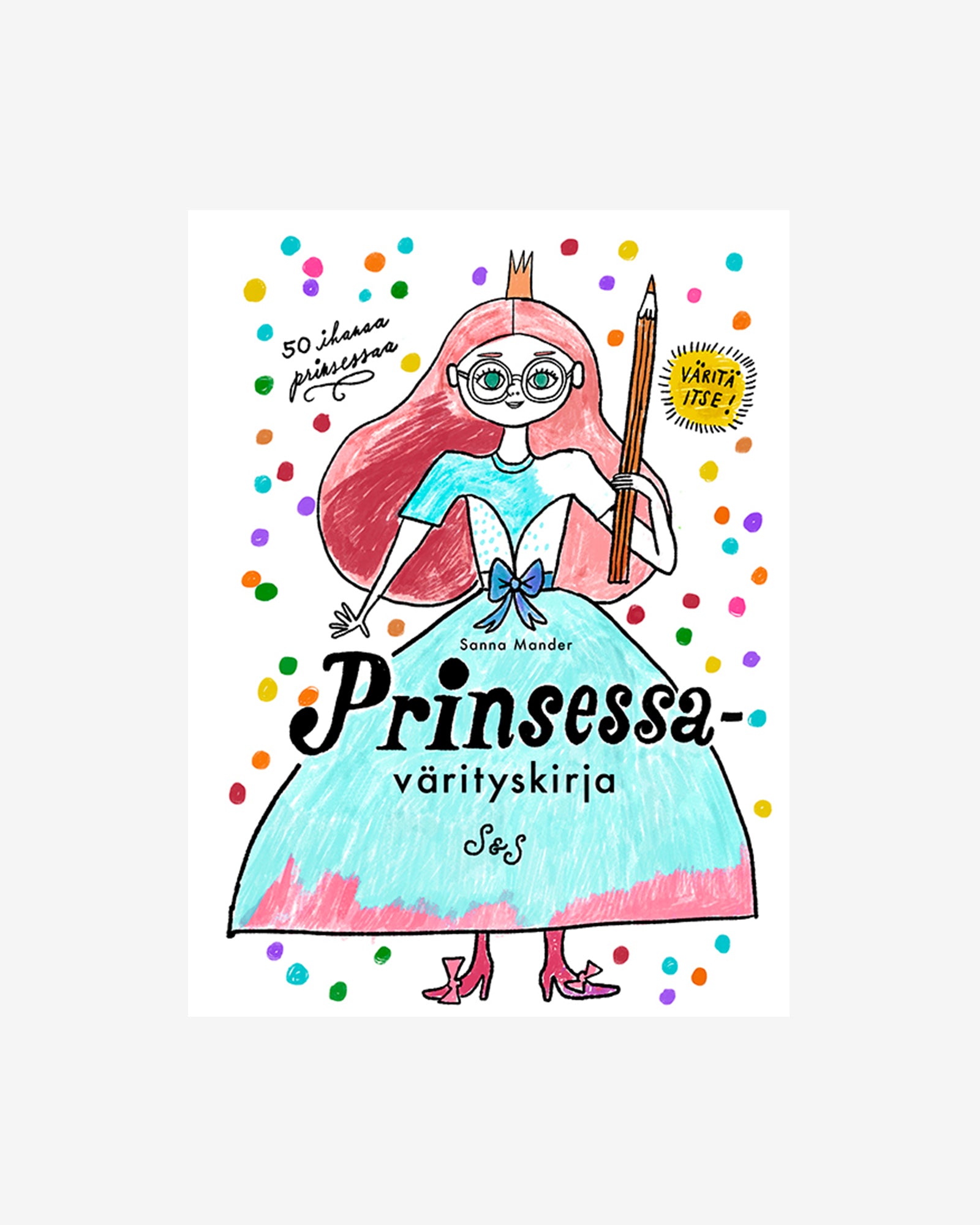 Prinsessavärityskirjassa tavataan 50 erilaista prinsessaa, jotka muuttuvat täydellisiksi lukijan (ja värikynien!) avulla. Mukana on tuttuja prinsessoja, kuten Prinsessa Ruusunen, mutta myös vähemmälle huomiolle jääneitä prinsessoja, kuten Monsteriprinsessa ja Supersankariprinsessa.