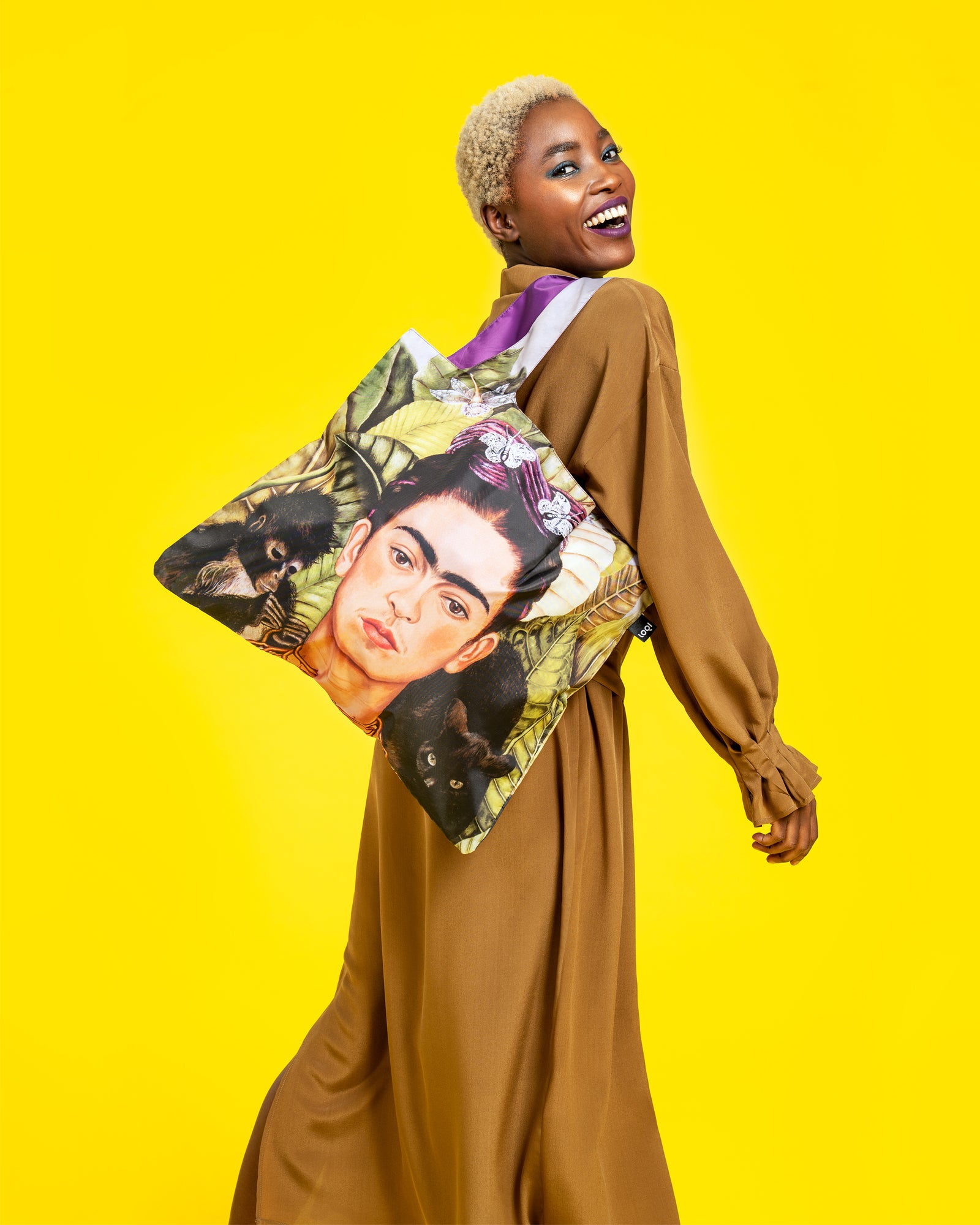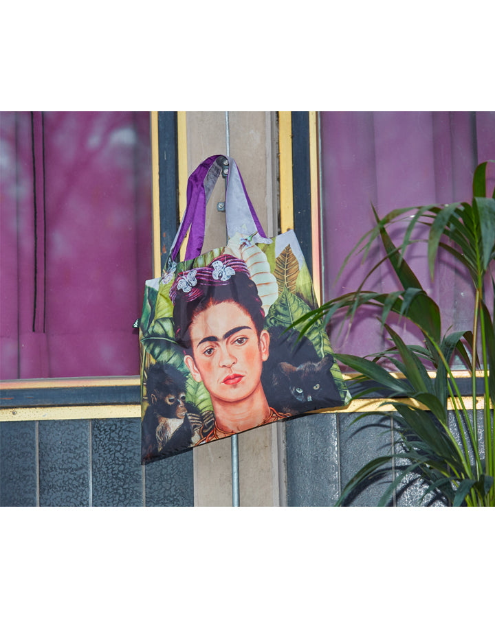 Kuljeta ostoksesi hurmaavassa Self Portrait with Hummingbird -kassissa! Käytännölliset ja tyylikkäät Loqi-kassit ovat vettähylkiviä ja kestävät jopa 20 kg:n painon. Kassi on pakattu pieneen pussukkaan, joka sujahtaa kätevästi käsilaukkuun, reppuun tai vaikka takintaskuun. Kassissa on teoskuva Frida Kahlon teoksesta Self Portrait with Hummingbird.