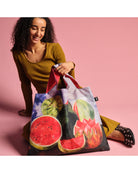 Kuljeta ostoksesi värikkäässä Viva la Vida -kassissa! Käytännölliset ja tyylikkäät Loqi-kassit ovat vettähylkiviä ja kestävät jopa 20 kg:n painon. Kassi on pakattu pieneen pussukkaan, joka sujahtaa kätevästi käsilaukkuun, reppuun tai vaikka takintaskuun. Kassissa on kuva Frida Kahlon teoksesta Viva la Vida, Watermelons.