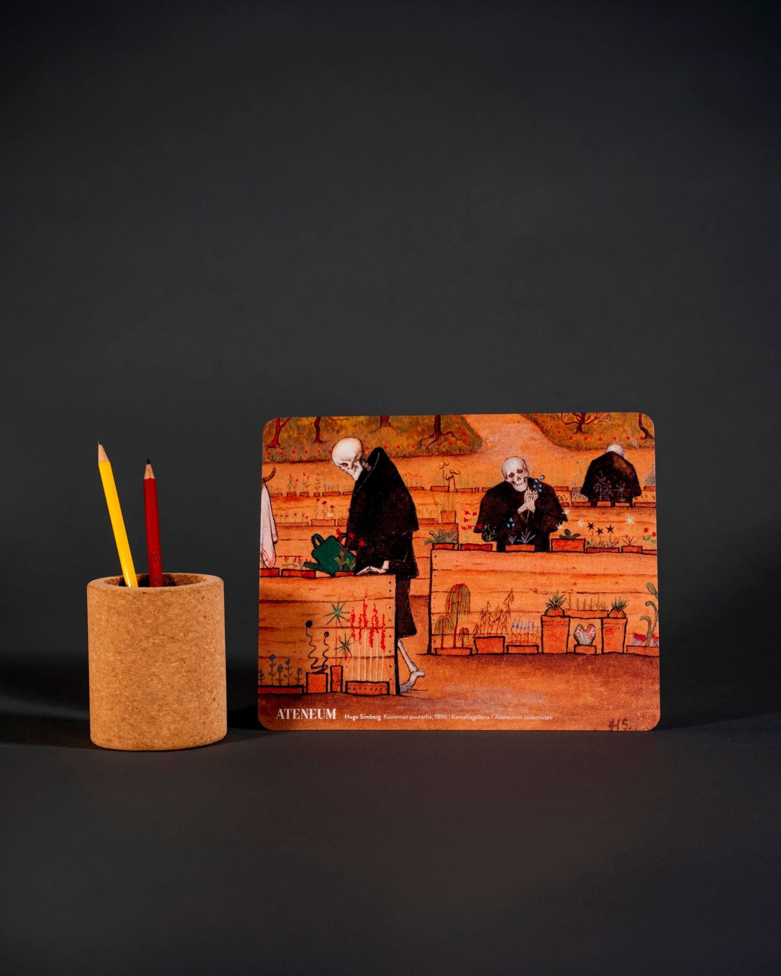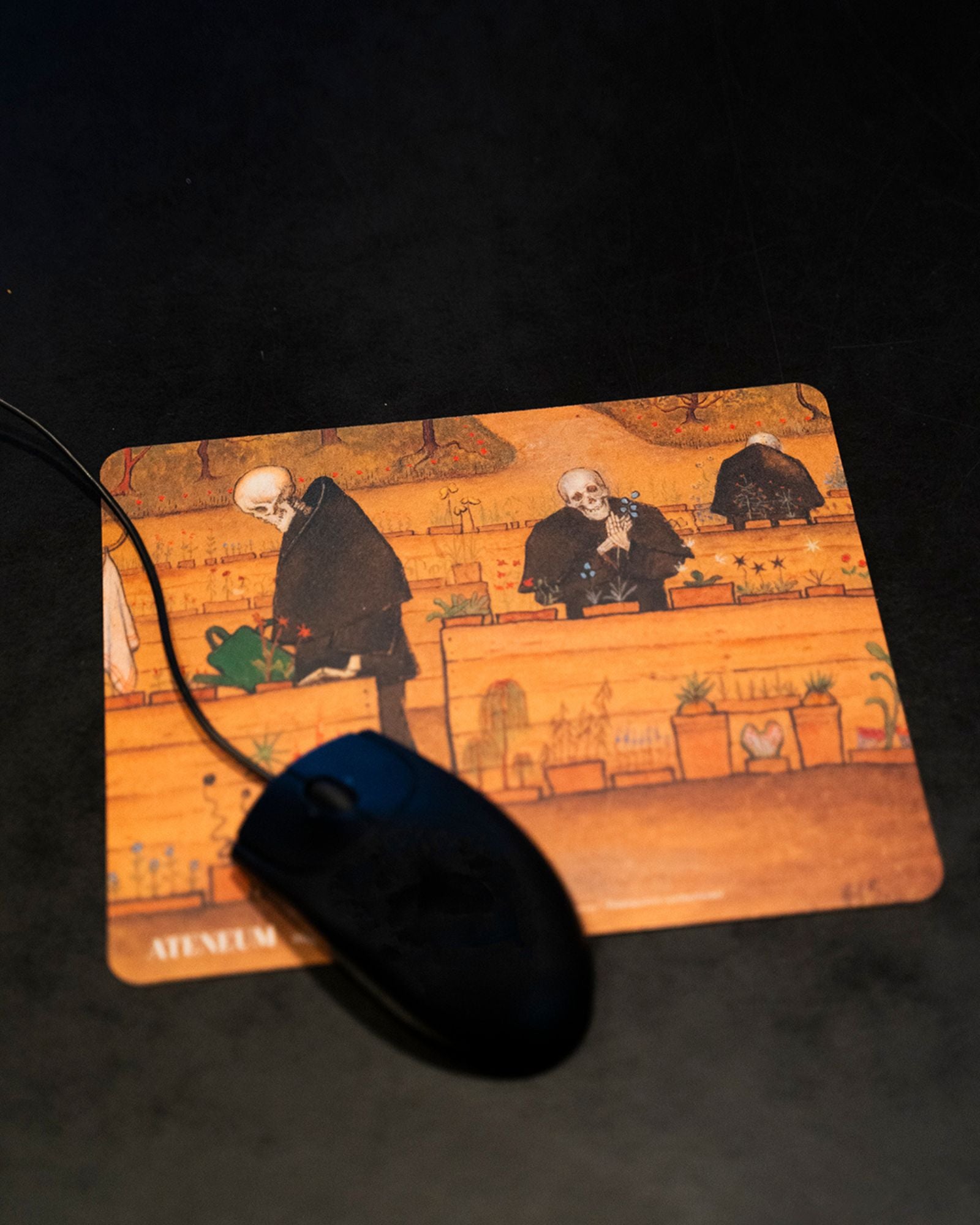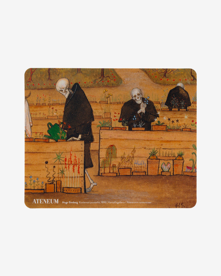 Päivitä työpöytäsi Kuoleman puutarha -hiirimatolla! Päräyttävällä alustalla hiirikin liikkuu näppärämmin. Hiirimatossa on liukumaton pohja ja päällä teoskuva Hugo Simbergin teoksesta Kuoleman puutarha.