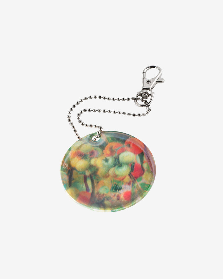 Erotu pimeässä tyylikkäällä Tomaatteja-heijastimella! Pyöreässä heijastimessa on kuva Pekka Halosen maalauksesta Tomaatteja, toisella puolella on Ateneumin logo.
