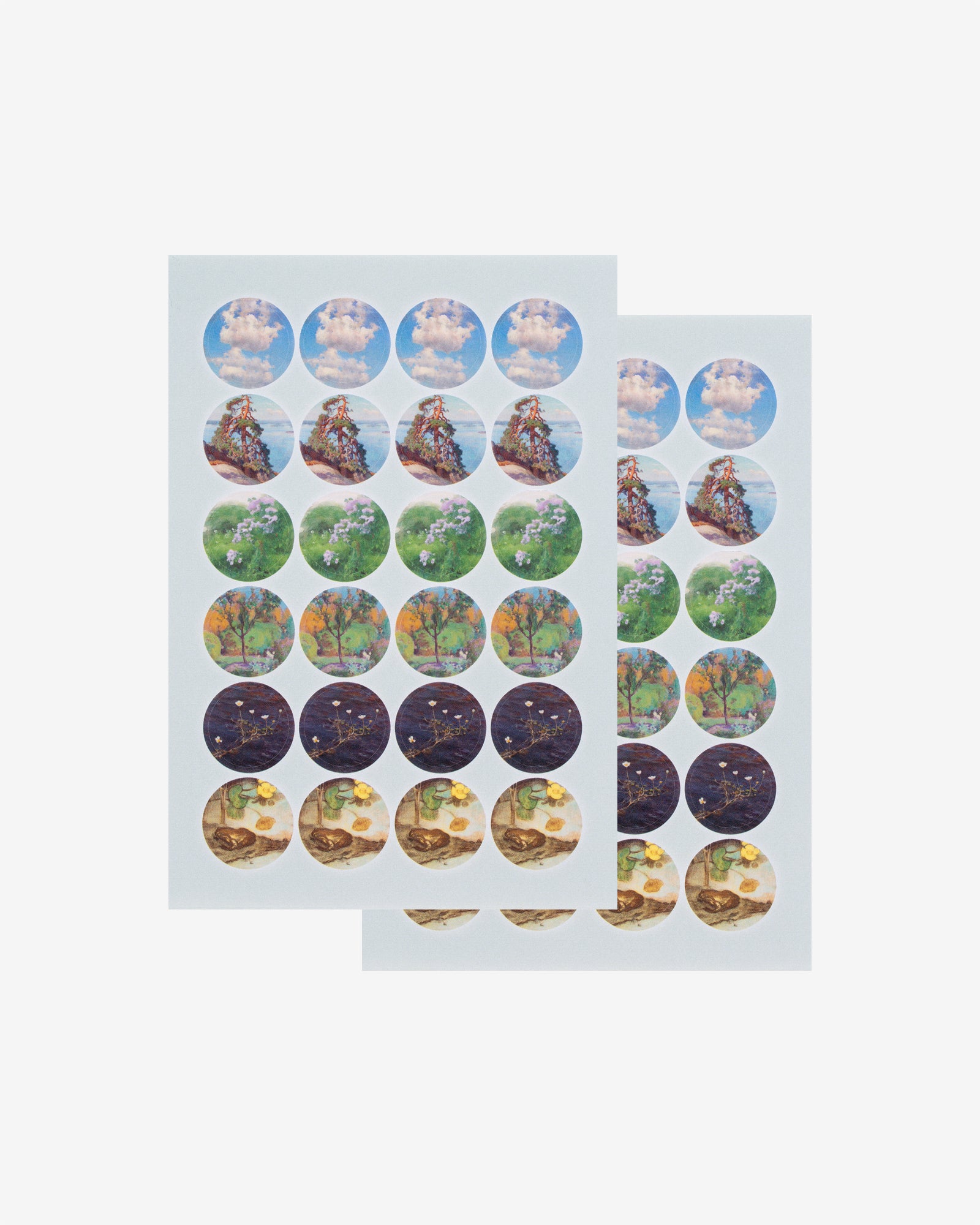 - Paketissa kaksi samanlaista tarra-arkkia, arkissa 24 pyöreää tarraa.