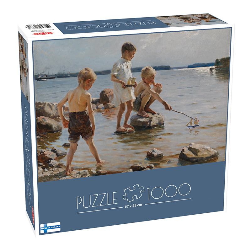Tässä Tacticin tuhannen palan palapelissä on askaretta useammaksikin koti-illaksi! Palapelin kokoaminen on hauskaa niin yksin kuin yhdessä ystävien tai perheenjäsenien kanssa. Aherrus palkitaan, sillä lopputuloksena on teoskuva Albert Edelfeltin maalauksesta Leikkiviä poikia rannalla.