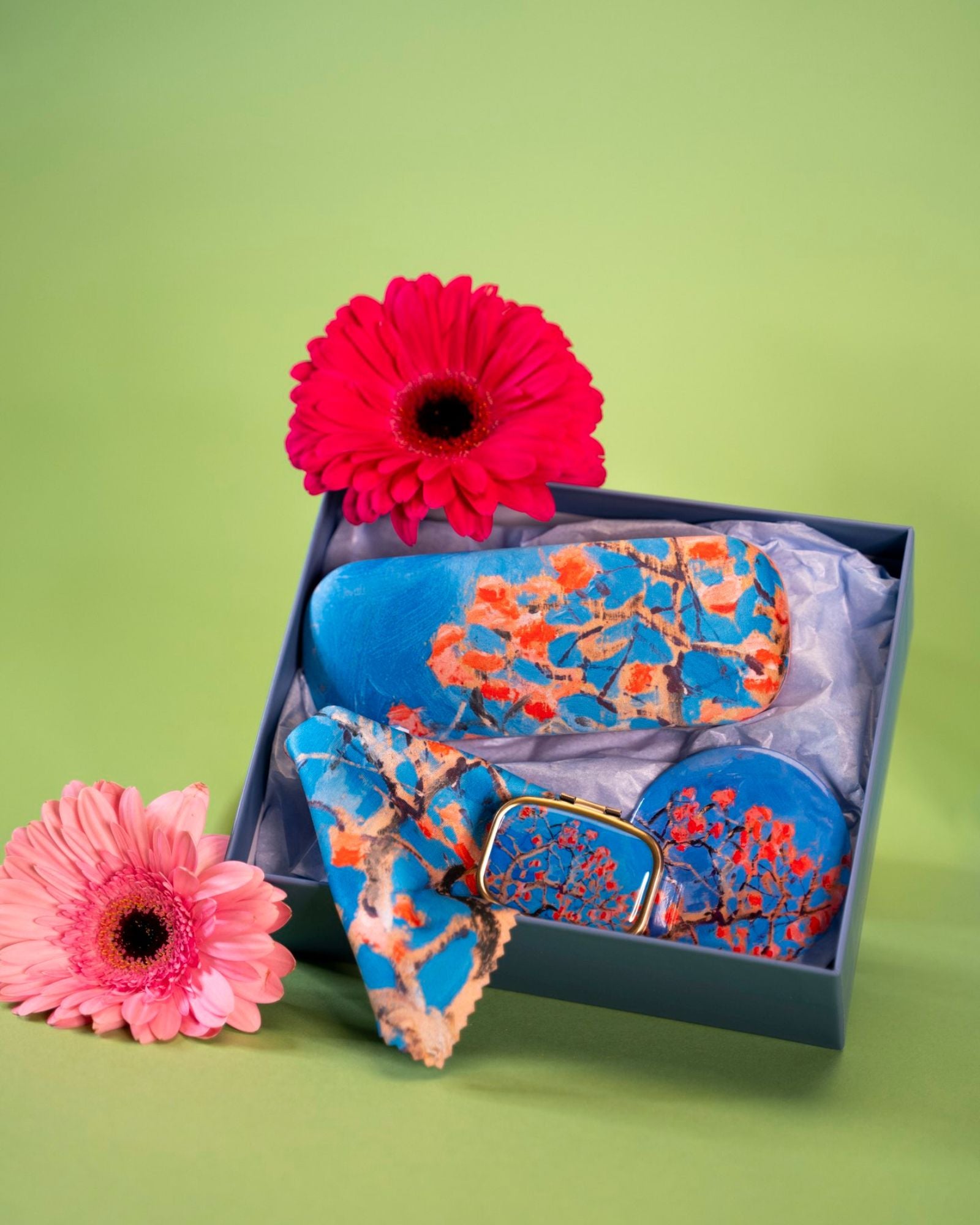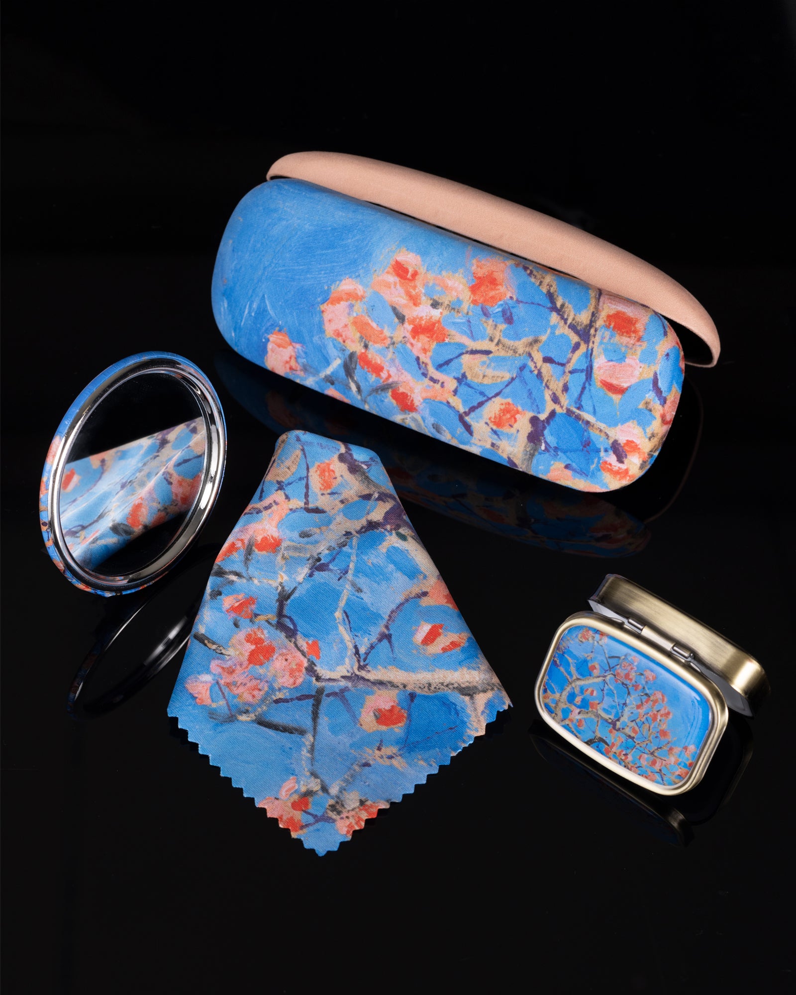 Yllätä taiteen ystävä upealla Kukkiva korallipuu -lahjasetillä! Paketti sisältää silmälasikotelon, silmälasiliinan, pillerirasian sekä taskupeilin. Jokaisessa tuotteessa on teoskuva Akseli Gallen-Kallelan maalauksesta Kukkiva korallipuu.