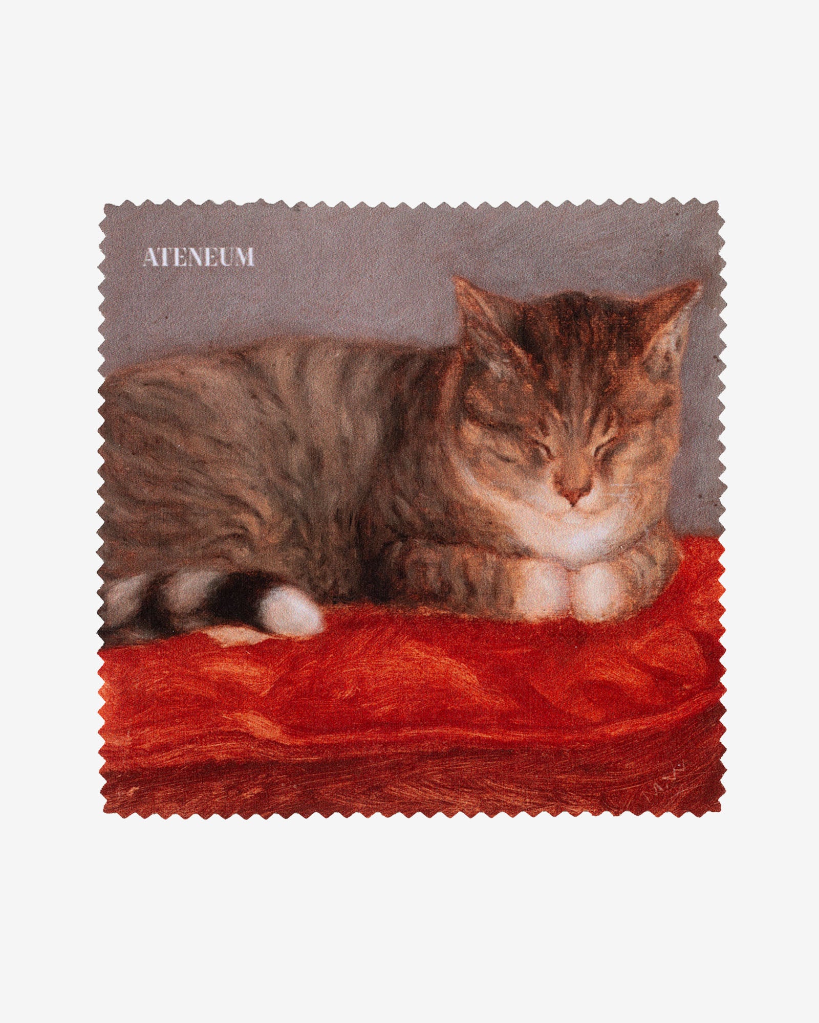 Kierrätysmuovista valmistetulla Makaava kissa, Mosse -silmälasiliinalla puhdistat silmä- ja aurinkolasit, puhelimen näytön tai kameran linssin. Kaunis liina taittuu pieneen tilaan ja kulkee mukana taskussa tai laukussa. Liinassa on teoskuva Maria Wiikin maalauksesta Makaava kissa, Mosse.