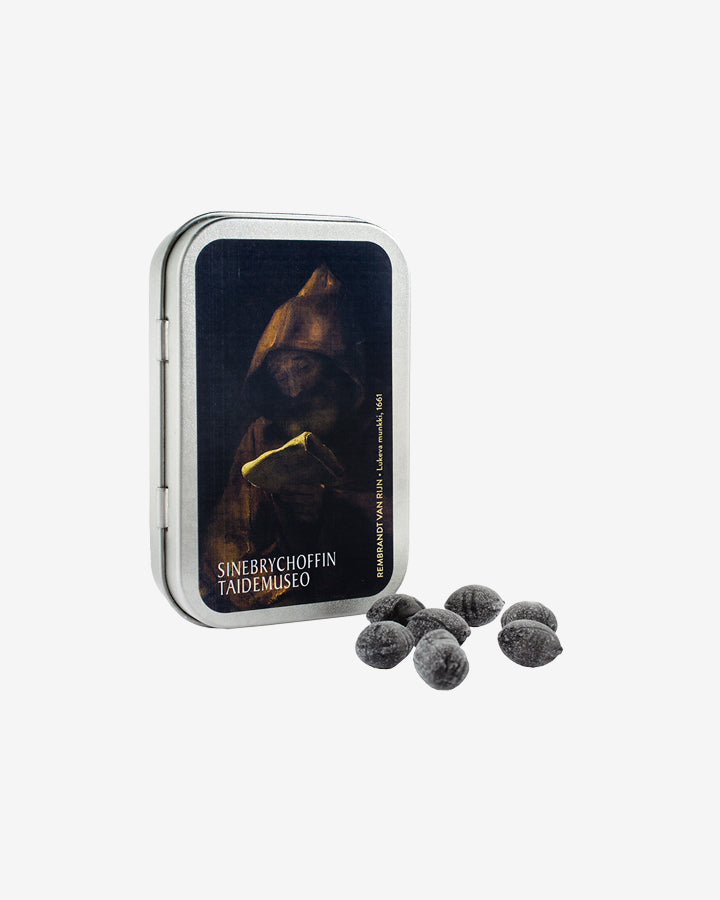 Lukeva munkki -lakritsipastillit tarjoavat pientä arjen iloa itselle ja ystävälle! Kauniisen metallirasiaan pakatut, lakritsinmakuiset pastillit saavat suun makeaksi. Rasian kannessa on teoskuva Rembrandt van Rijn'n maalauksesta Lukeva munkki.