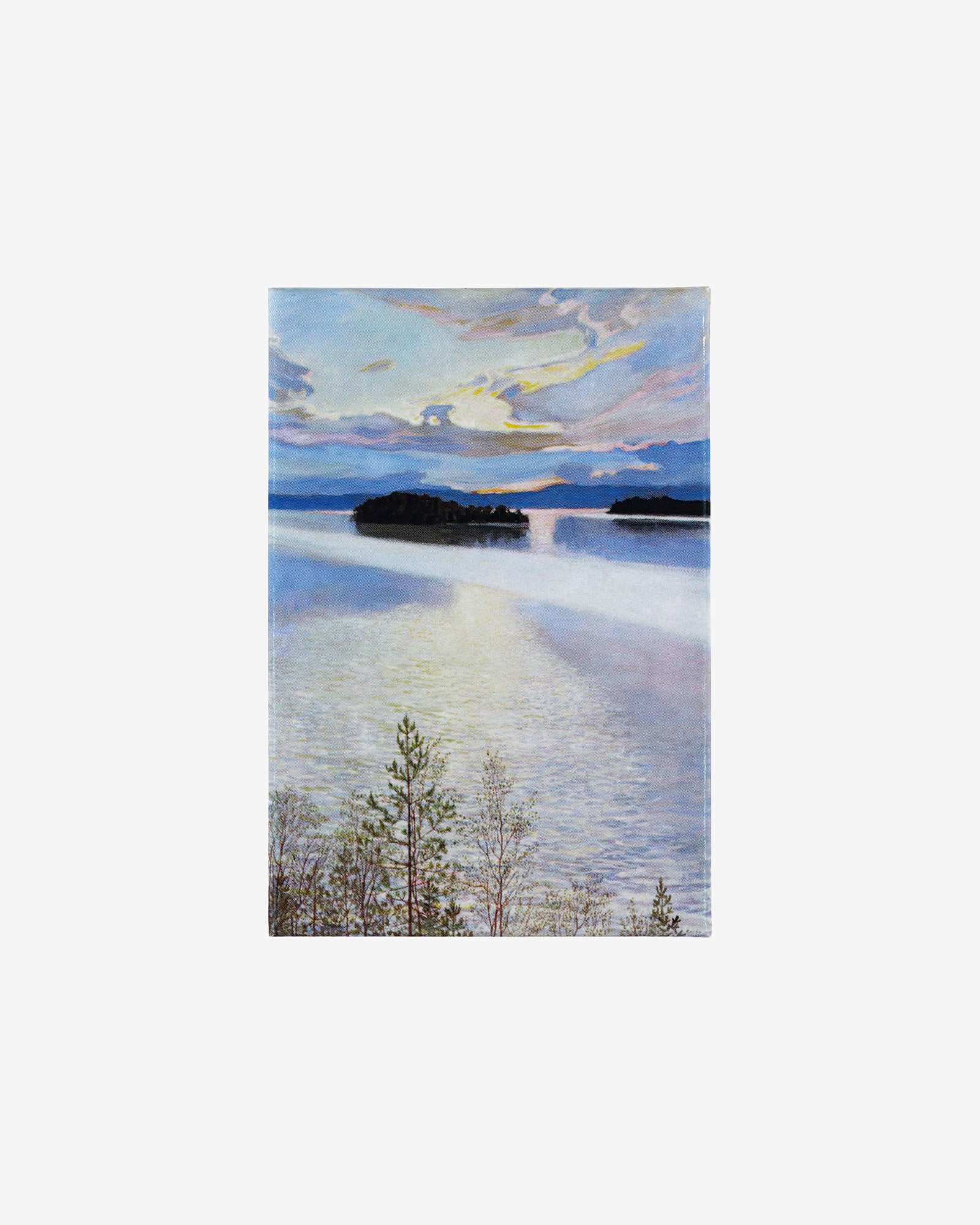 Magneetti on näyttely- ja matkamuistojen klassikko! Yllätä taiteen ystävä pienellä lahjalla tai kokoa magneeteista oma galleria jääkaapin oveen. Magneetissa on teoskuva Akseli Gallen-Kallelan maalauksesta Järvimaisema.