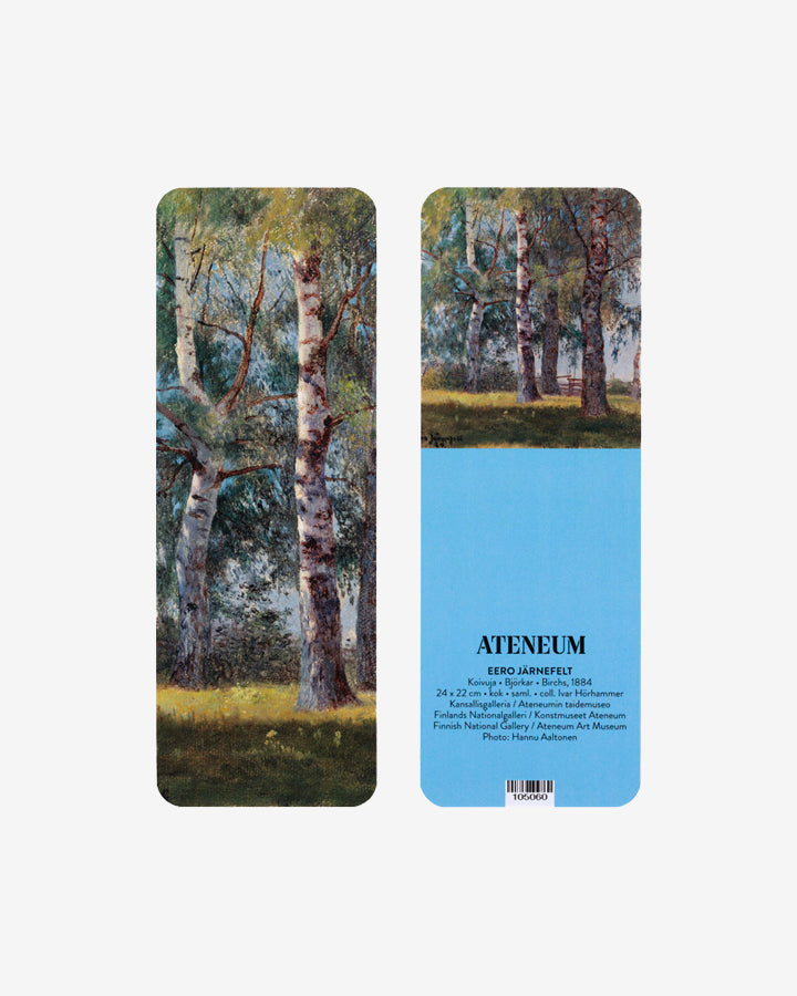 Käytä Koivuja-kirjanmerkkiä ja jatka lukuhetkeä myöhemmin! Teoskuva Eero Järnefeltin maalauksesta Koivuja piristää aina avatessasi kirjan.