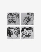 Tom of Finland -lasinaluset tuovat asennetta kattaukseen ja suojaavat samalla kalusteita juoma-astioiden jättämiltä jäljiltä. Lasinaluset on valmistettu MDF-levystä, ja ne voi puhdistaa kostealla liinalla. Laadukkaiden, Suomessa valmistettujen lasinalusten aiheena on neljä erilaista Nimetön-teosta Tom of Finlandilta.