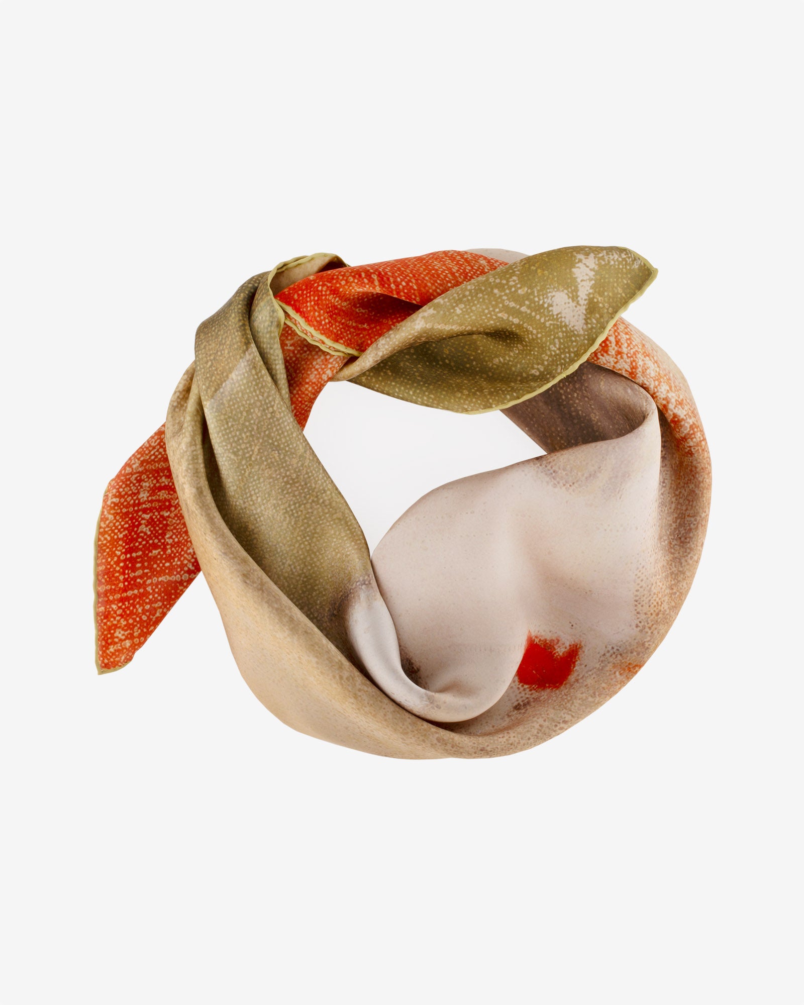 Lisää asuusi ripaus luksusta Perhekoru-silkkihuivilla! Viehättävä huivi on myös nappivalinta tyylitietoisen taiteen ystävän lahjapakettiin. Silkkihuivissa on käsintehdyt päärmeet ja digipainettu kuva Helene Schjerfbeckin teoksesta Perhekoru.