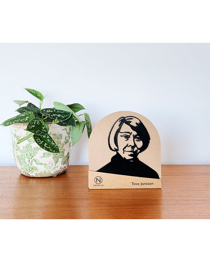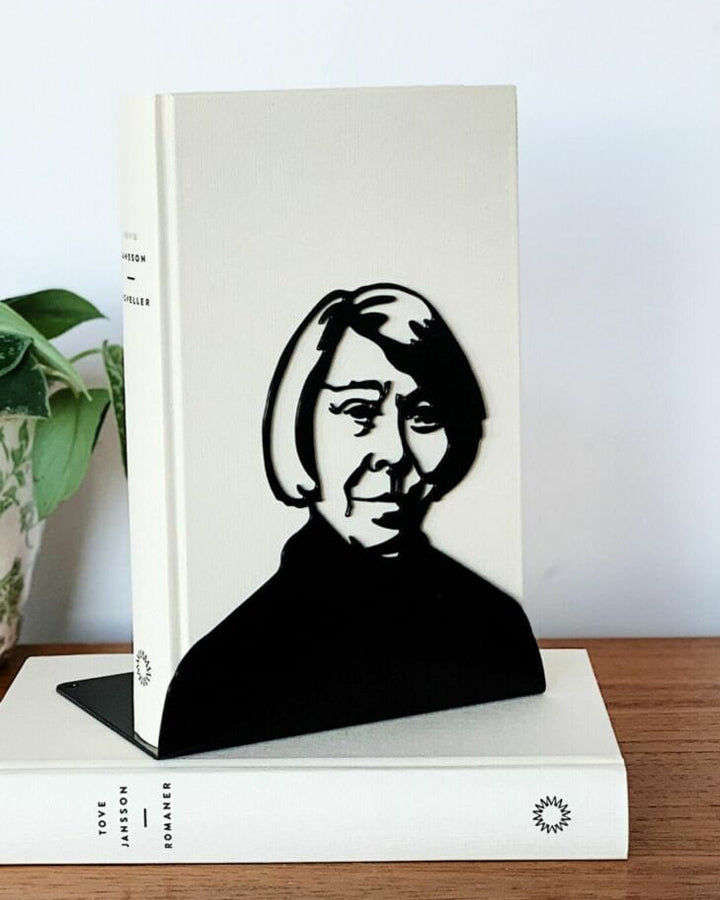 Tove Jansson -kirjatuki tuo ryhtiä ja tyyliä kirjahyllyyn! Tukeva, metallista valmistettu kirjatuki pitää kurittomat kirjarivit ojennuksessa ja viimeistelee hyllyn ilmeen. Tyylikäs ja käytännöllinen esine on osuva lahjaidea kulttuurin ystävälle, jolla on jo lähes kaikkea.