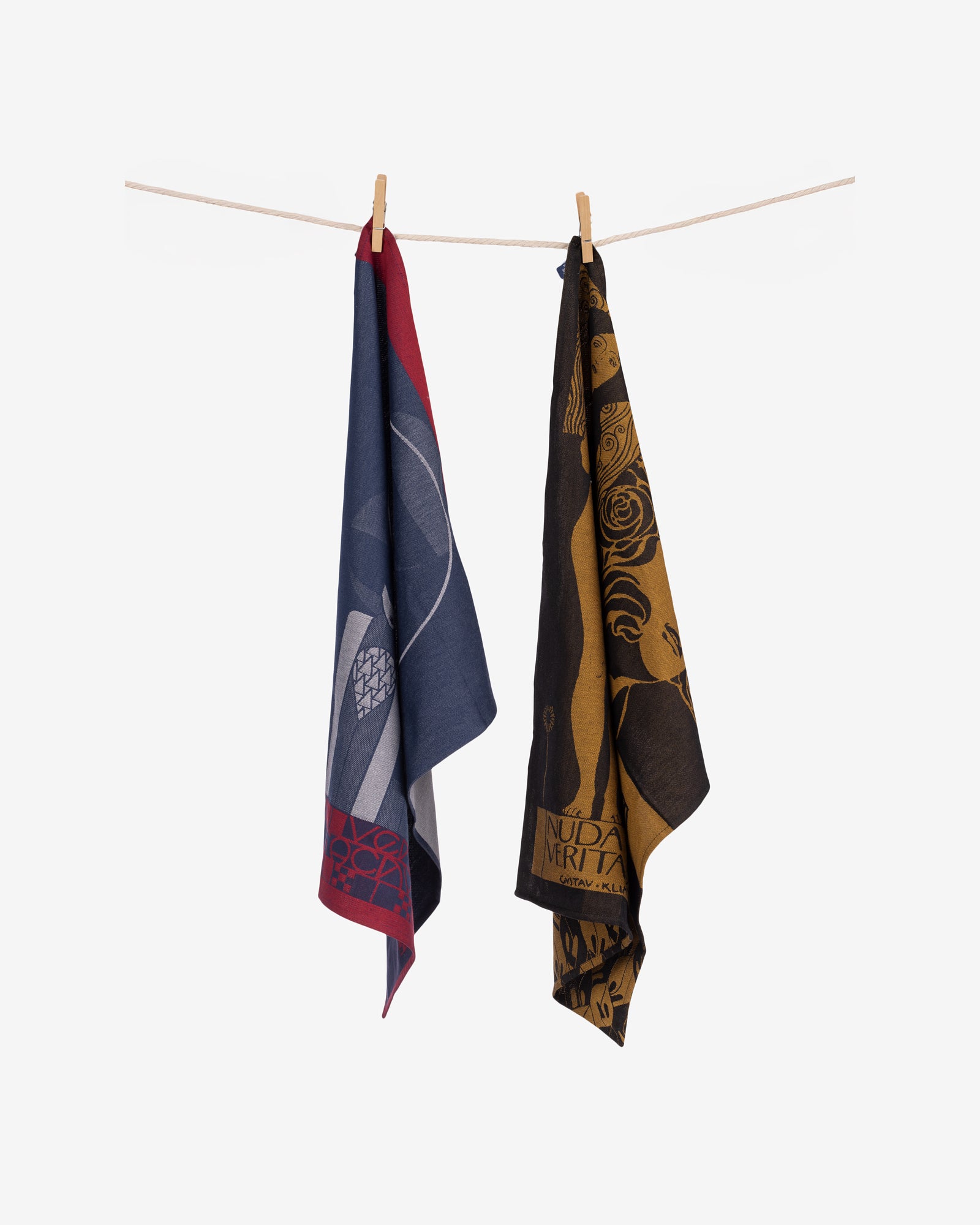 Ver Sacrum -keittiöpyyhe on tyylikäs apu arjen askareisiin. Sen ilme on saanut inspiraationsa Koloman Moserin Wienin sesessiolle suunnittelemasta näyttelyjulisteesta. Käytännöllinen keittiöpyyhe onkin mainio lahjaidea taiteen ystävälle. Laadukas pyyhe on kudottu Ranskassa jacquard-tekniikalla yli 100-vuotisen kutomisperinteen mukaisesti.
