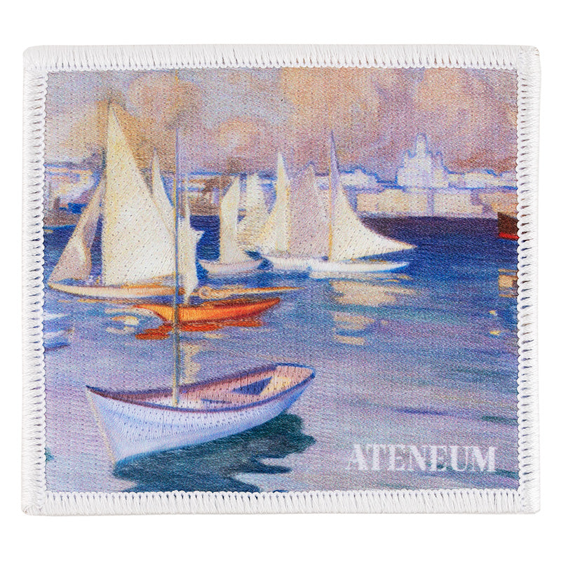 Erottaudu opiskelijariennoissa kauniilla Nyländska Jaktklubben -haalarimerkillä! Ateneumin taideaiheiset kangasmerkit täydentävät myös farkkutyylin ja sopivat vaikkapa kangaskassin koristeeksi. Laadukas haalarimerkki kiinnitetään ompelemalla, ja siinä on tarkalla erikoistekniikalla brodeerattu teoskuva Albert Edelfeltin maalauksesta Nyländska Jaktklubbenin soutusatama Helsingissä.