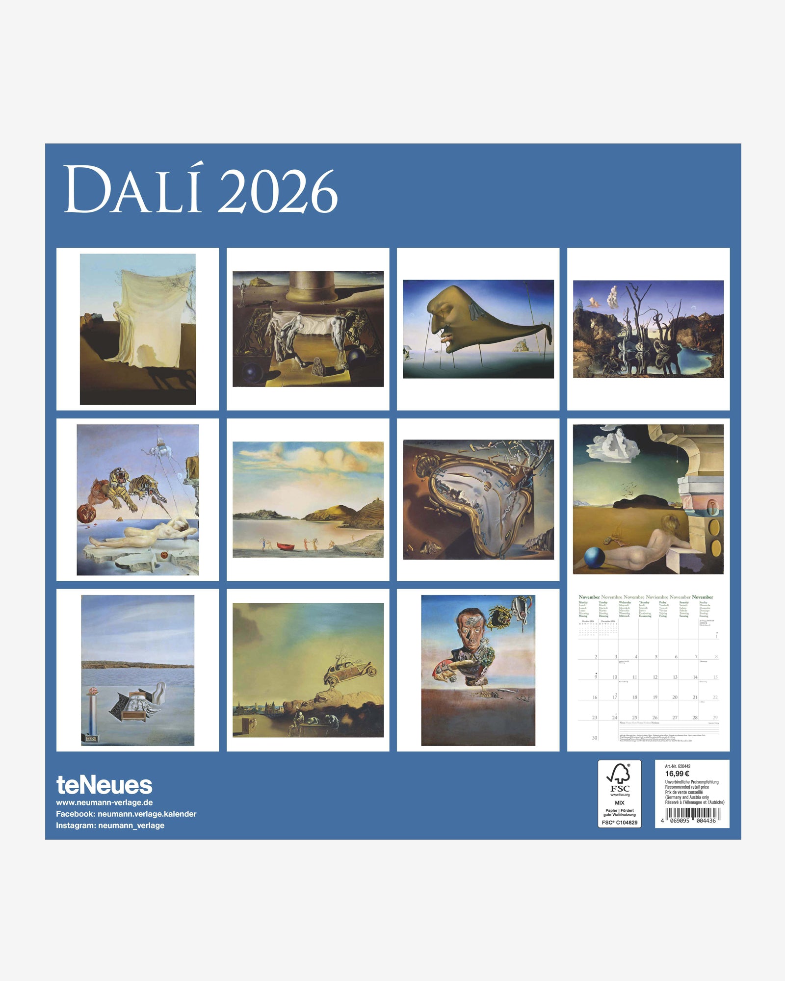 Laadukkaassa Salvador Dalí -seinäkalenterissa on uusi taidekuva jokaiselle kuukaudelle sekä käytännöllinen kalenteripohja, jossa on tilaa omille merkinnöille ja muistiinpanoille. Kalenteri on kuusikielinen (englanti, saksa, ranska, italia, espanja ja hollanti), ja se sisältää tiedot kuun vaiheista sekä lukuisista kansainvälisistä juhlapäivistä. Kalenteri on erinomainen valinta omaan käyttöön tai lahjaksi taiteen ystävälle – kaunis ja hyödyllinen lisä kodin tai toimiston seinälle.