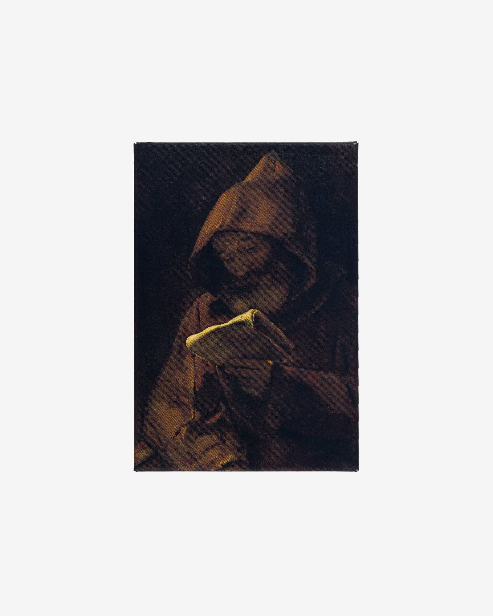 Surprise an art lover with a small gift or create your own gallery on the fridge door. This magnet features Monk Reading by Rembrandt van Rijn.