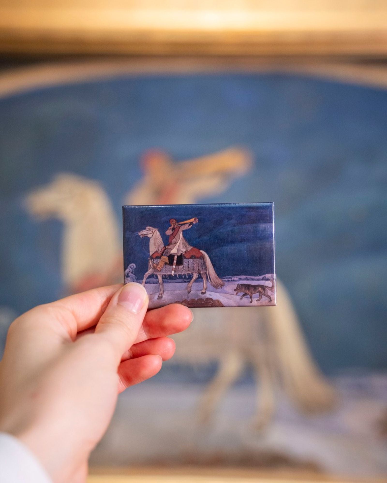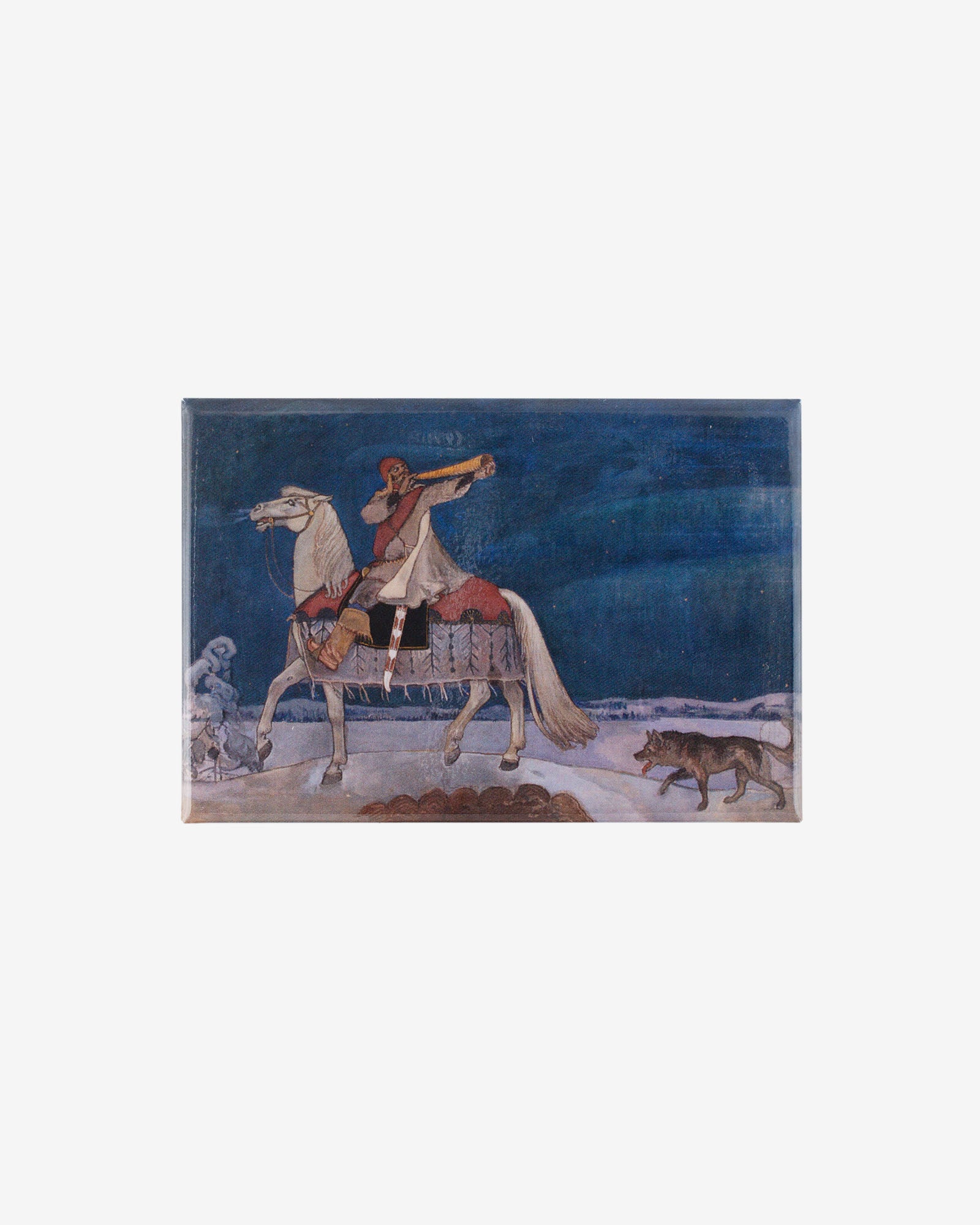 Surprise an art lover with a small gift or create your own gallery on the fridge door. This magnet features Kullervo Sets off for Battle by Akseli Gallen-Kallela.