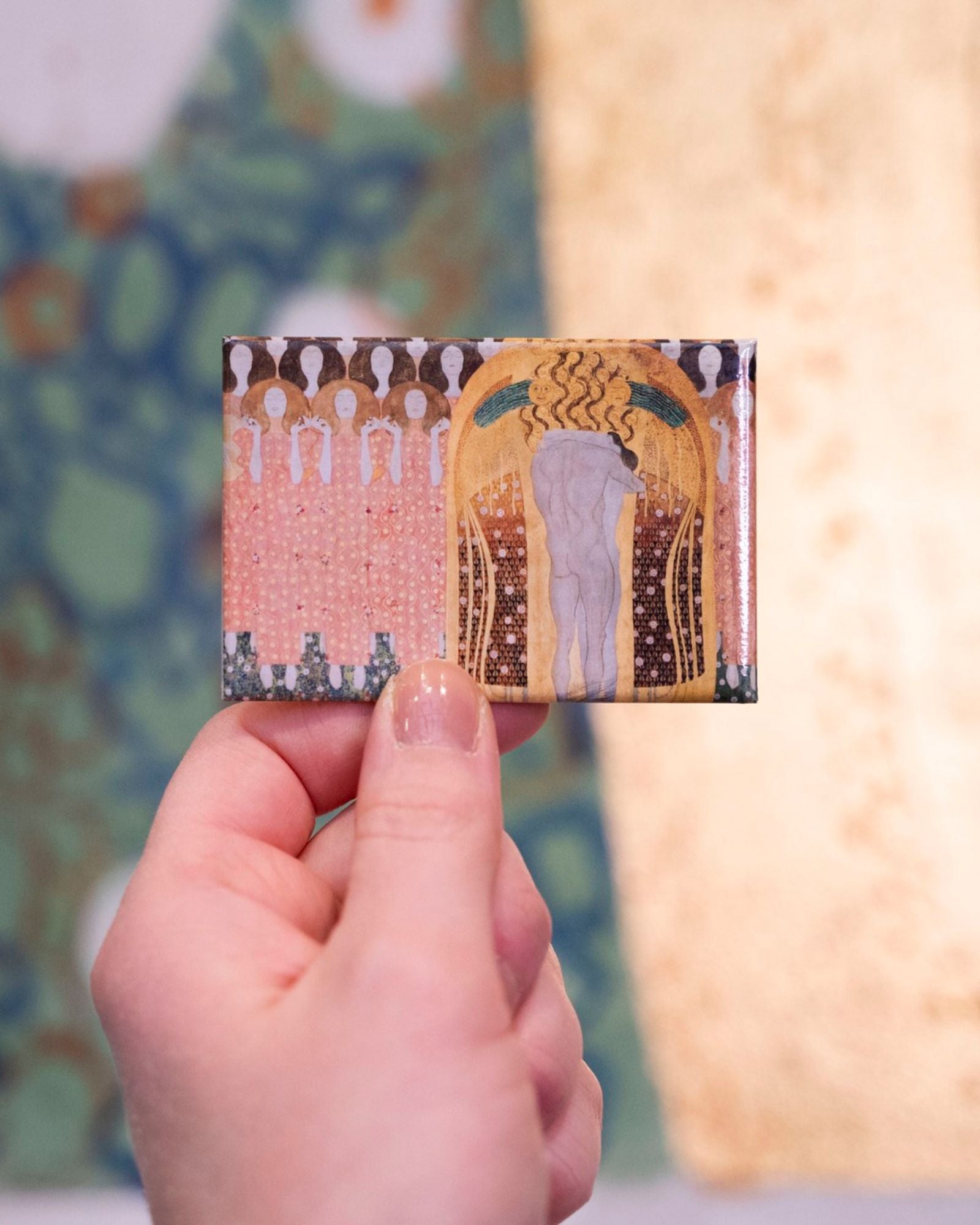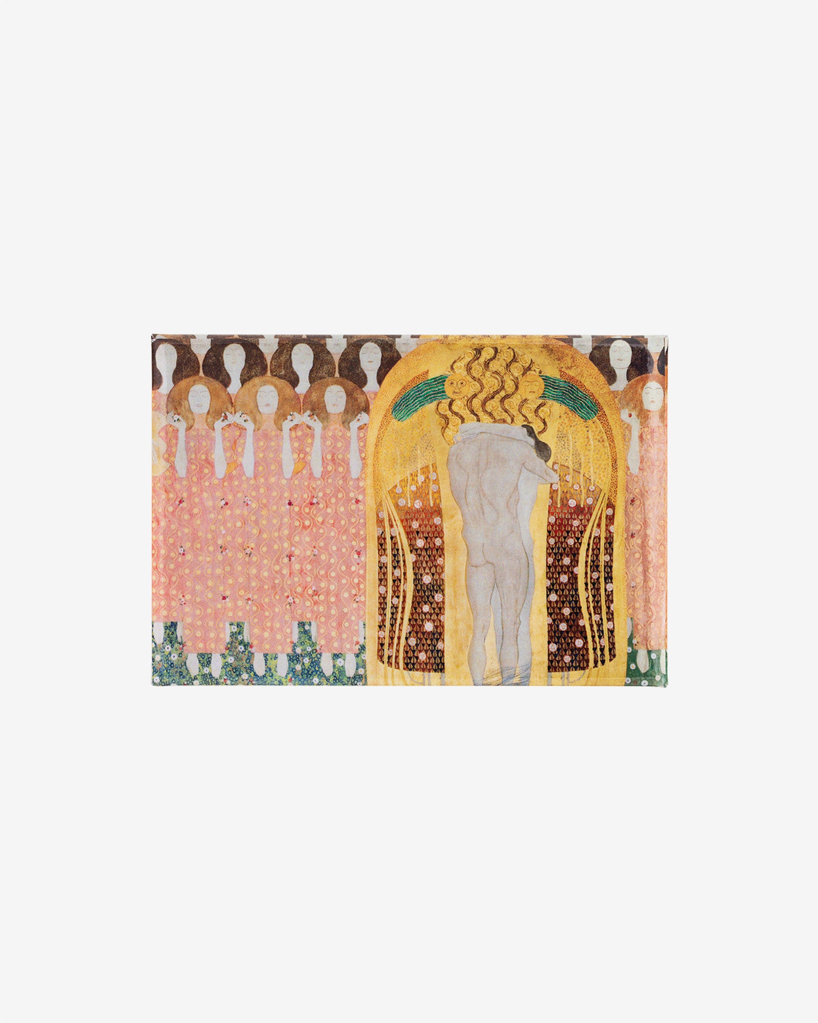 Surprise an art lover with a small gift or create your own gallery on the fridge door. This magnet features a detail from Beethoven Frieze by Gustav Klimt.