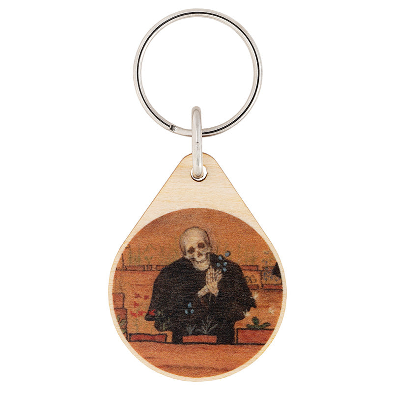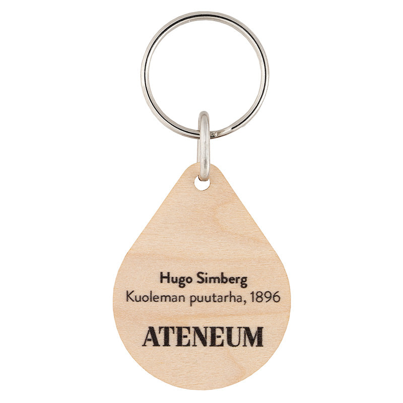 Stylish The Garden of Death keyring is made of Finnish birch plywood and manufactured in Helsinki. The front features an image of Hugo Simberg’s painting The Garden of Death, while the back displays the Ateneum logo and artwork details.
