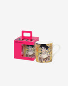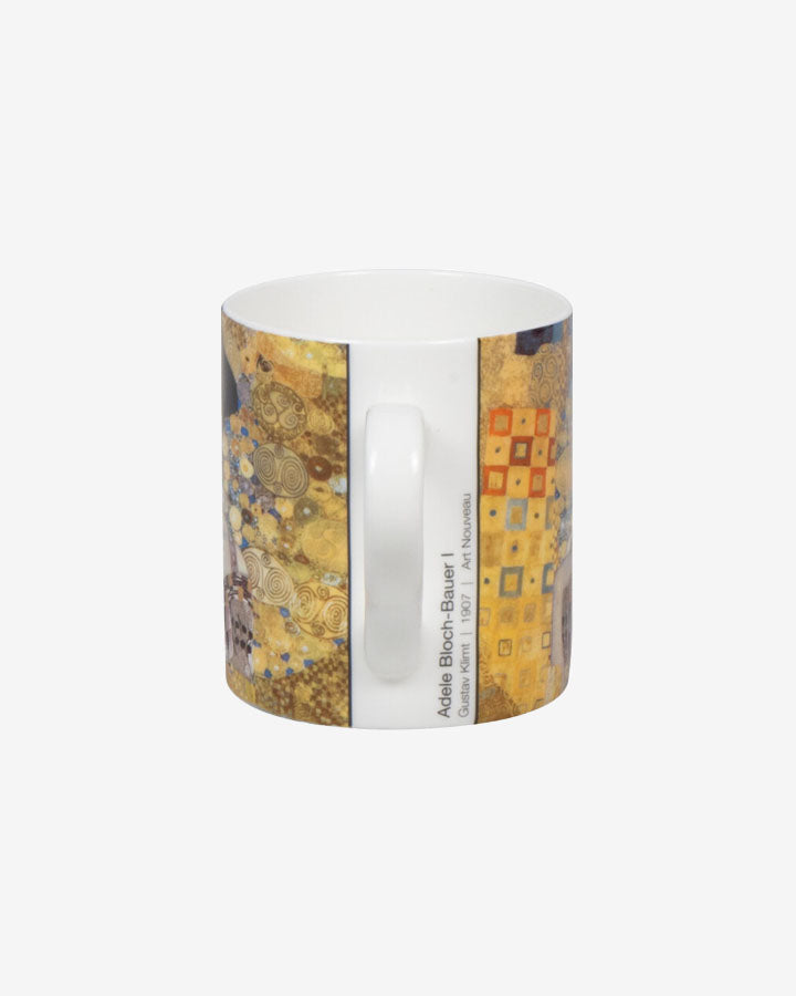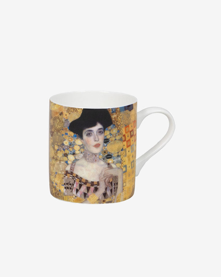 Its shape is especially well-suited for tea lovers, though it also makes coffee or hot chocolate taste just as delightful. The mug features a printed image of Portrait of Adele Bloch Bauer I by Gustav Klimt, with colors beautifully rendered on the fine bone china surface.