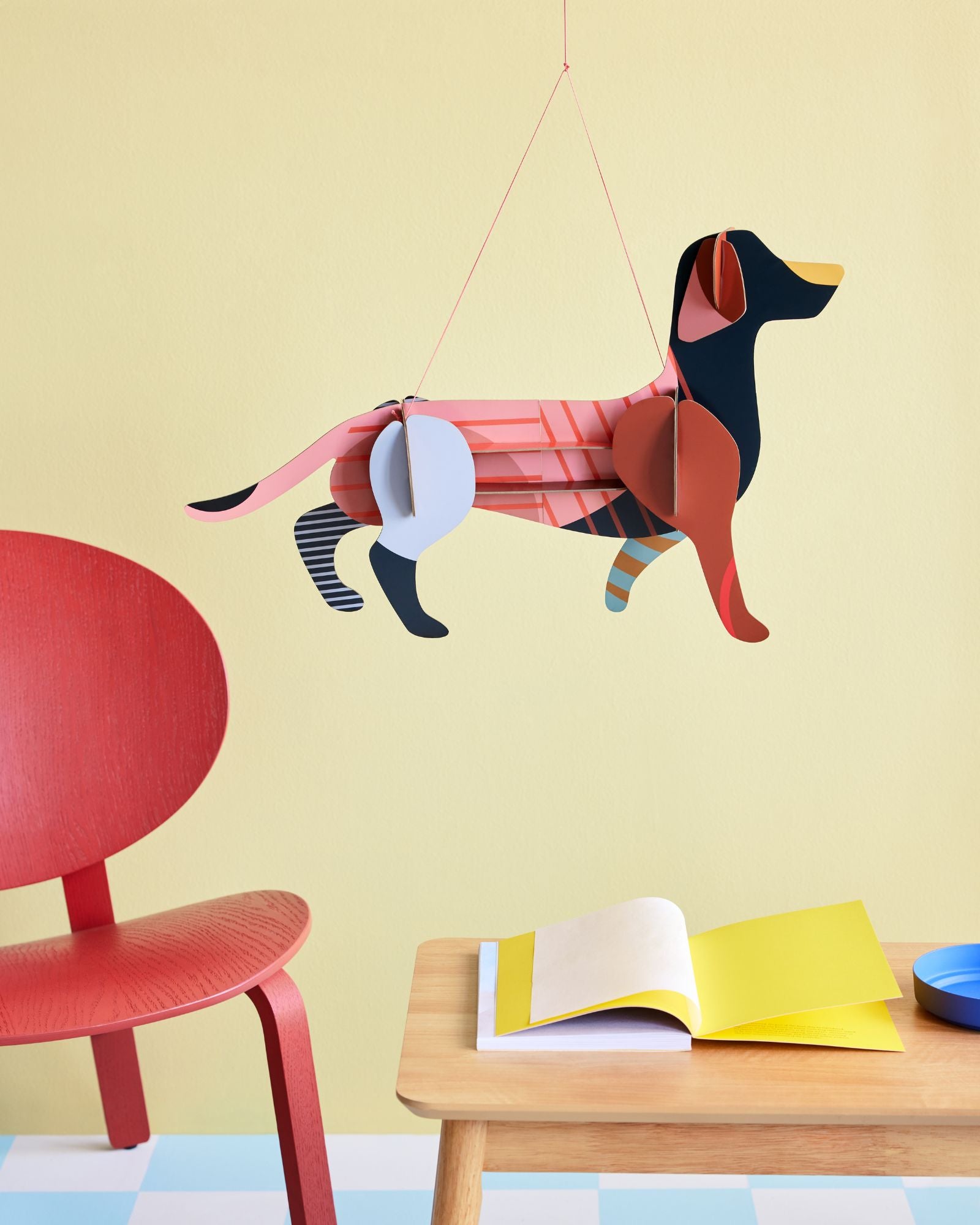 Maggie Dachshund mobile makes a stunning eye-catcher for a child’s room! This stylish hanging mascot also adds a delightful touch to any colorful interior. The decorative 3D figure comes flat-packed in a cardboard box and includes easy assembly instructions.
