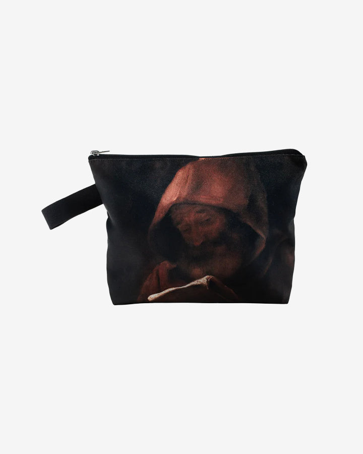 Carry your cosmetics or small essentials on the go in the spacious Monk Reading toiletry bag. This stylish bag won’t be forgotten at the back of the cupboard – just hang it by its loop on a bathroom hook. The high-quality pouch features a lining and an open inner pocket. The fabric pattern is inspired by Rembrandt van Rijn’s painting Monk Reading.