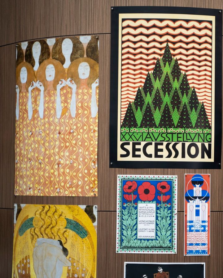 Secession poster with a detail of Beethoven Frieze by Gustav Klimt.