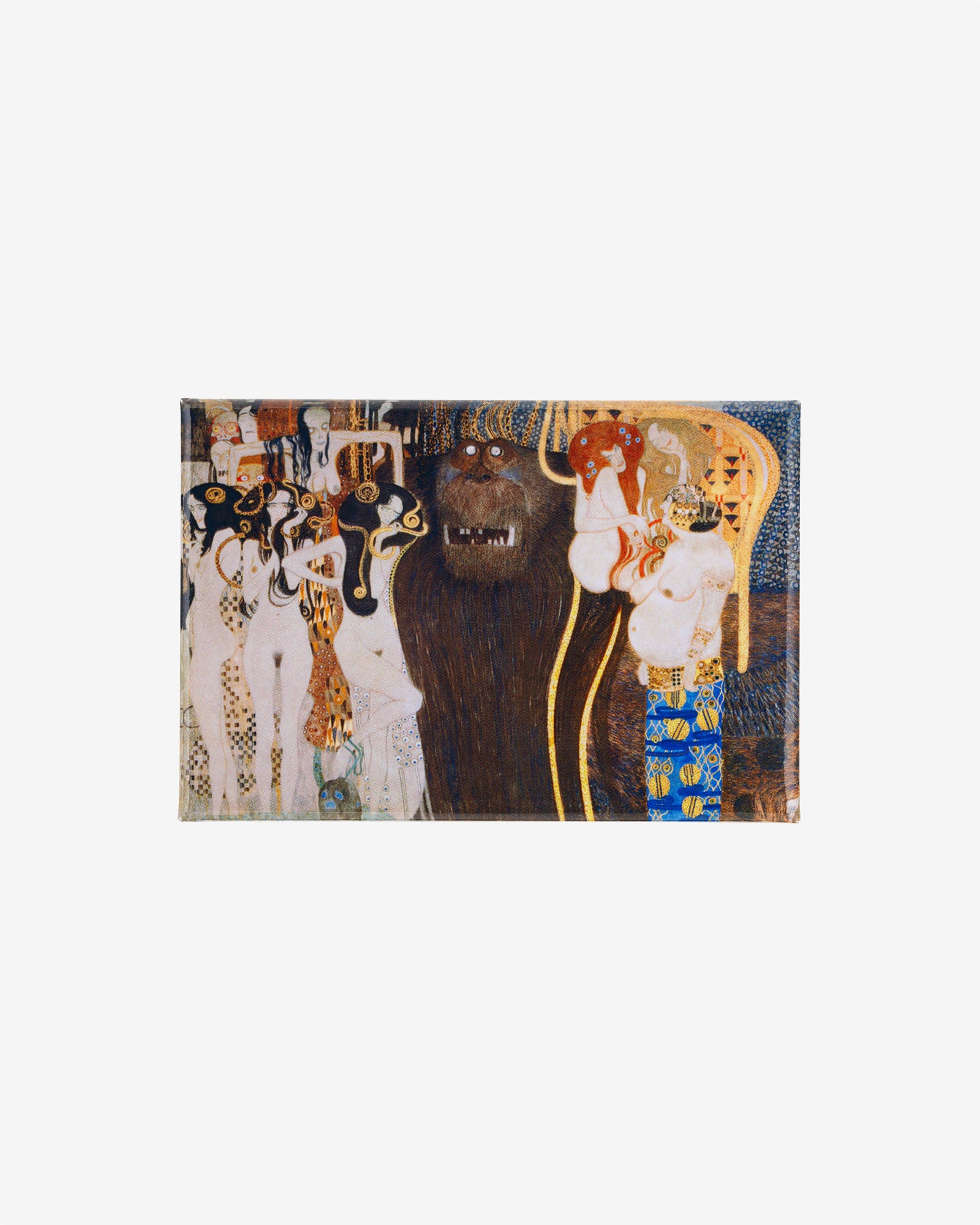 Surprise an art lover with a small gift or create your own gallery on the fridge door. This magnet features a detail from Beethoven Frieze by Gustav Klimt.