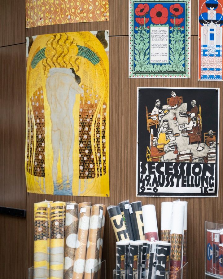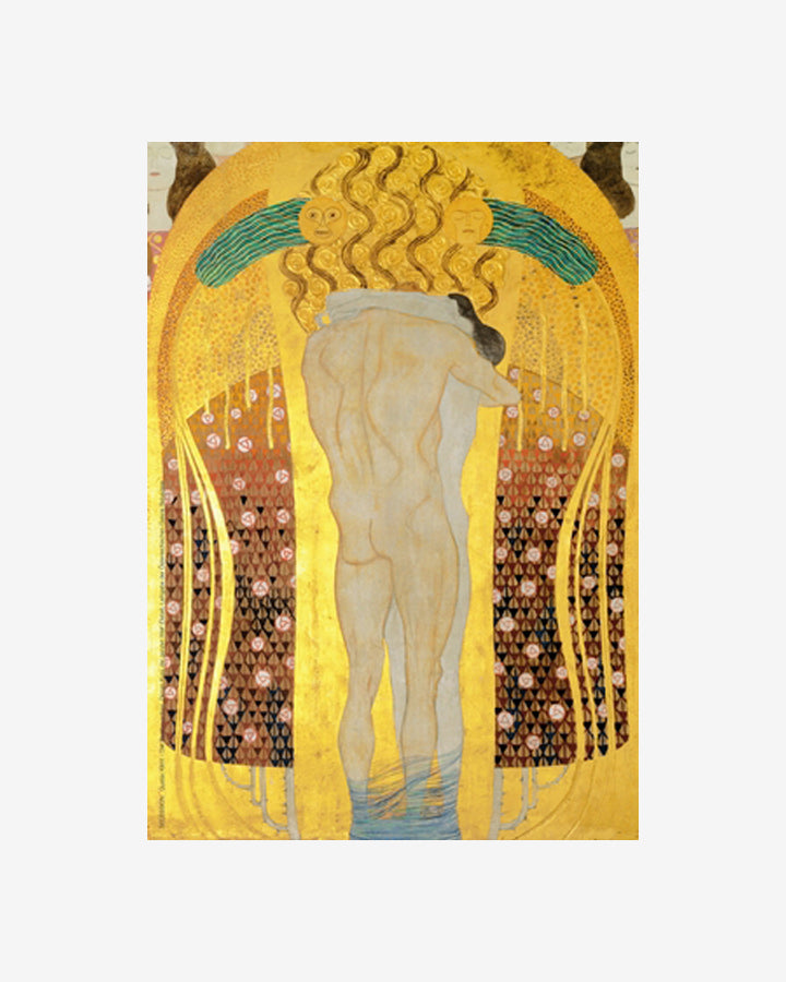 Secession poster with a detail of Beethoven Frieze by Gustav Klimt.