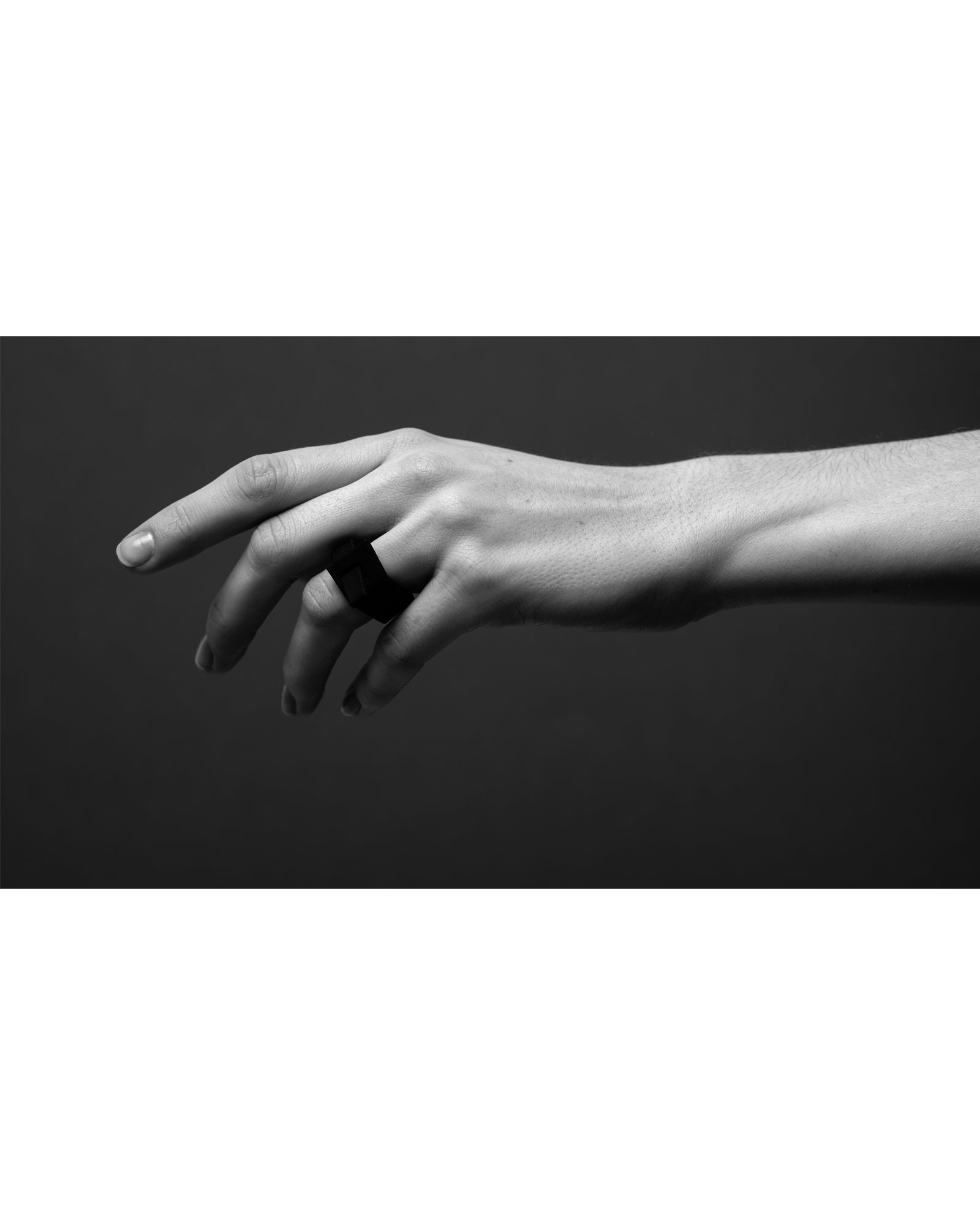 The Duality rings are inspired by architecture. The idea for the Rihm ring's form originally took shape in the designer’s mind—only later did a matching, still-unknown building appear during an online search. The Estonian word rihm translates to “belt”. The ring’s minimalist yet intriguing form shifts depending on how it is worn on the finger.