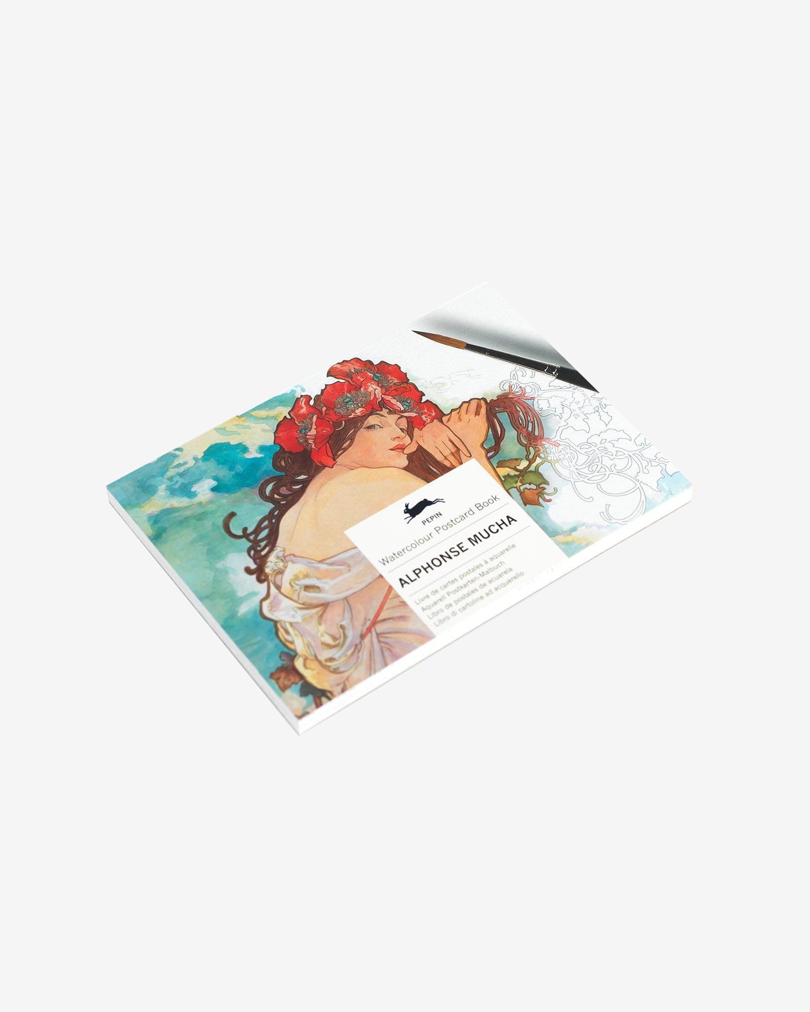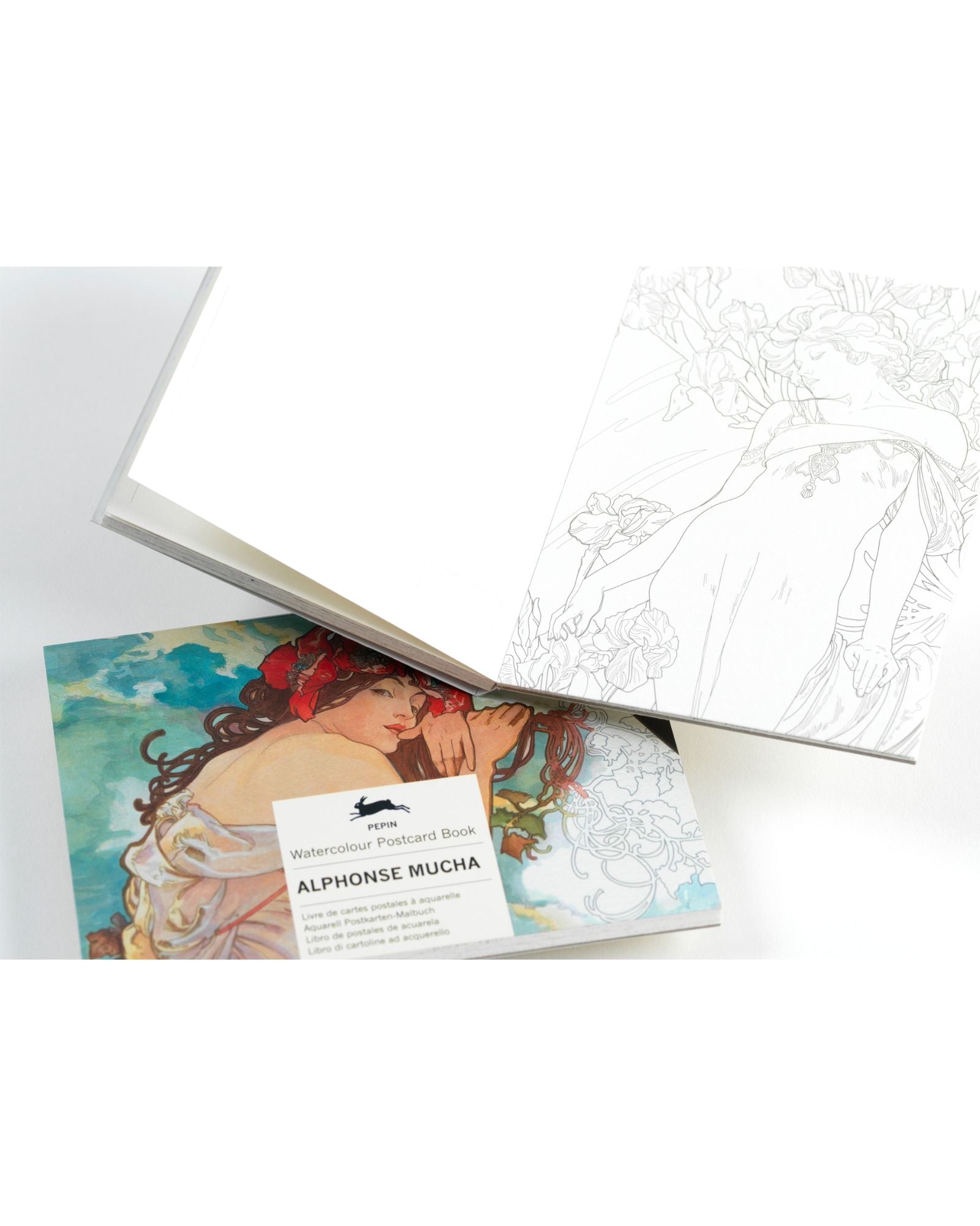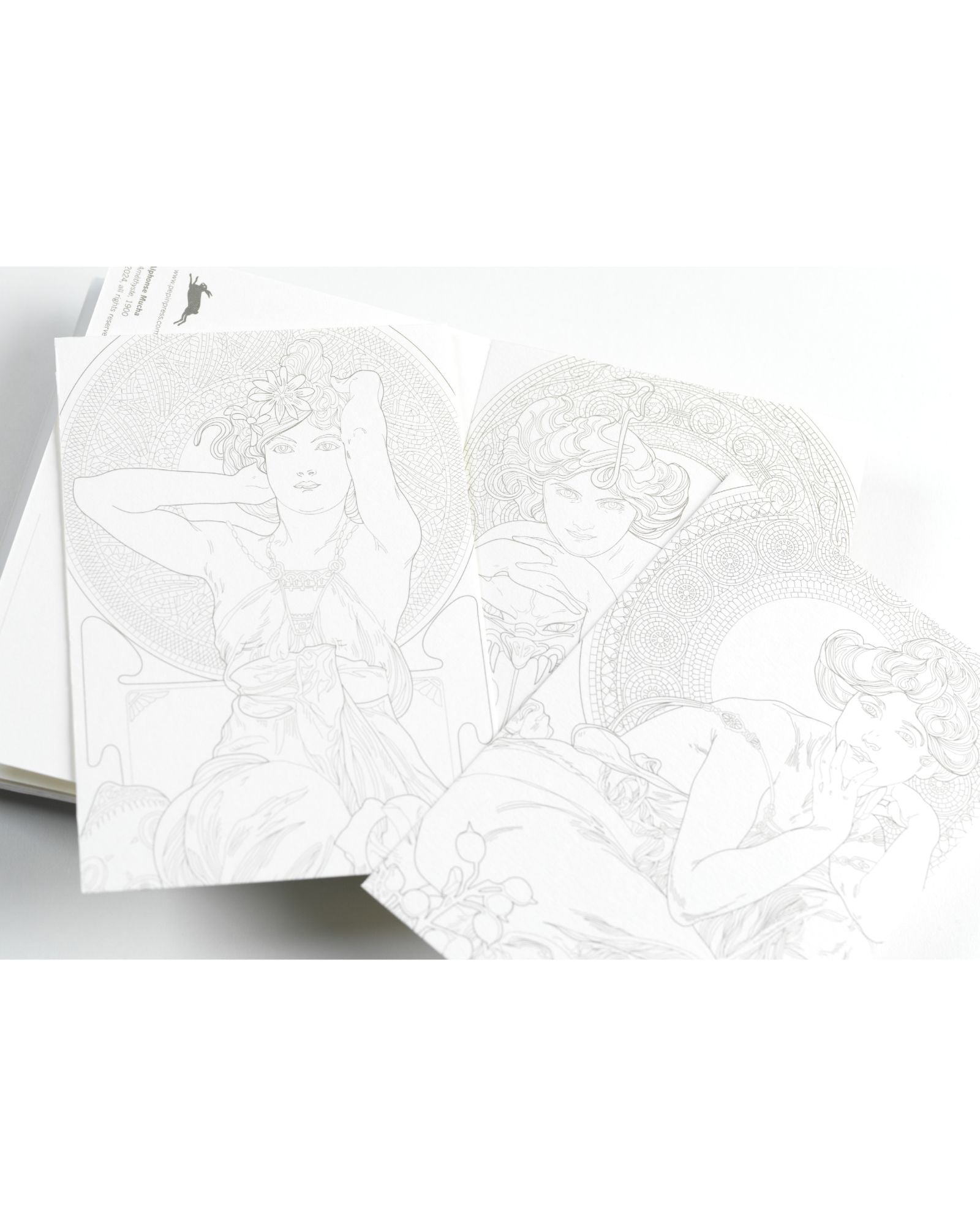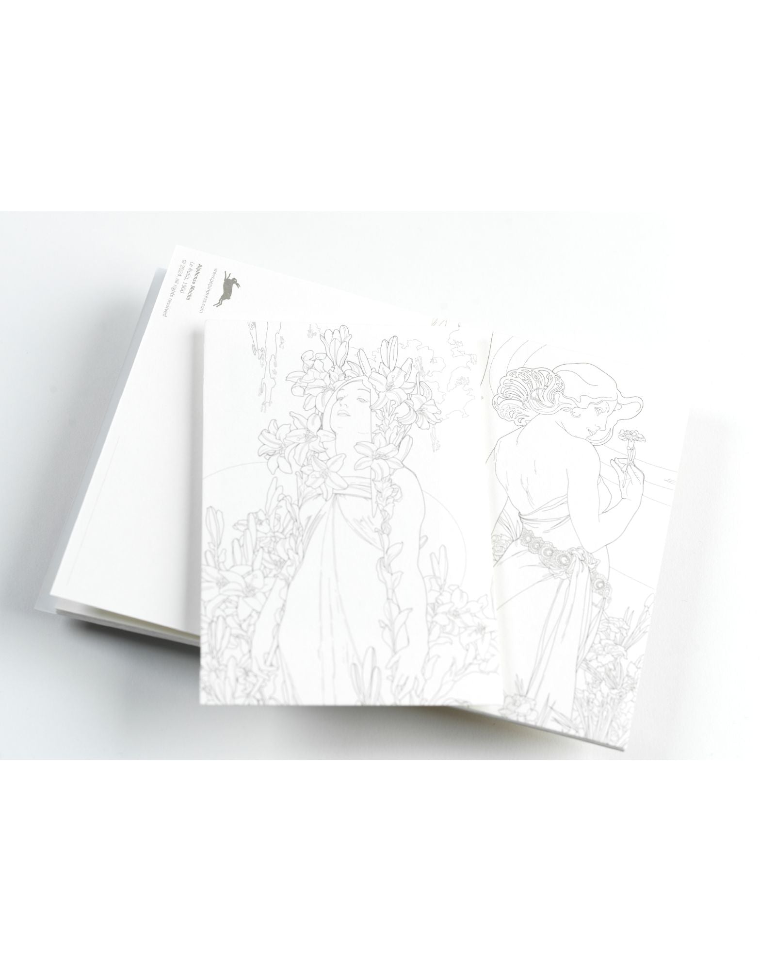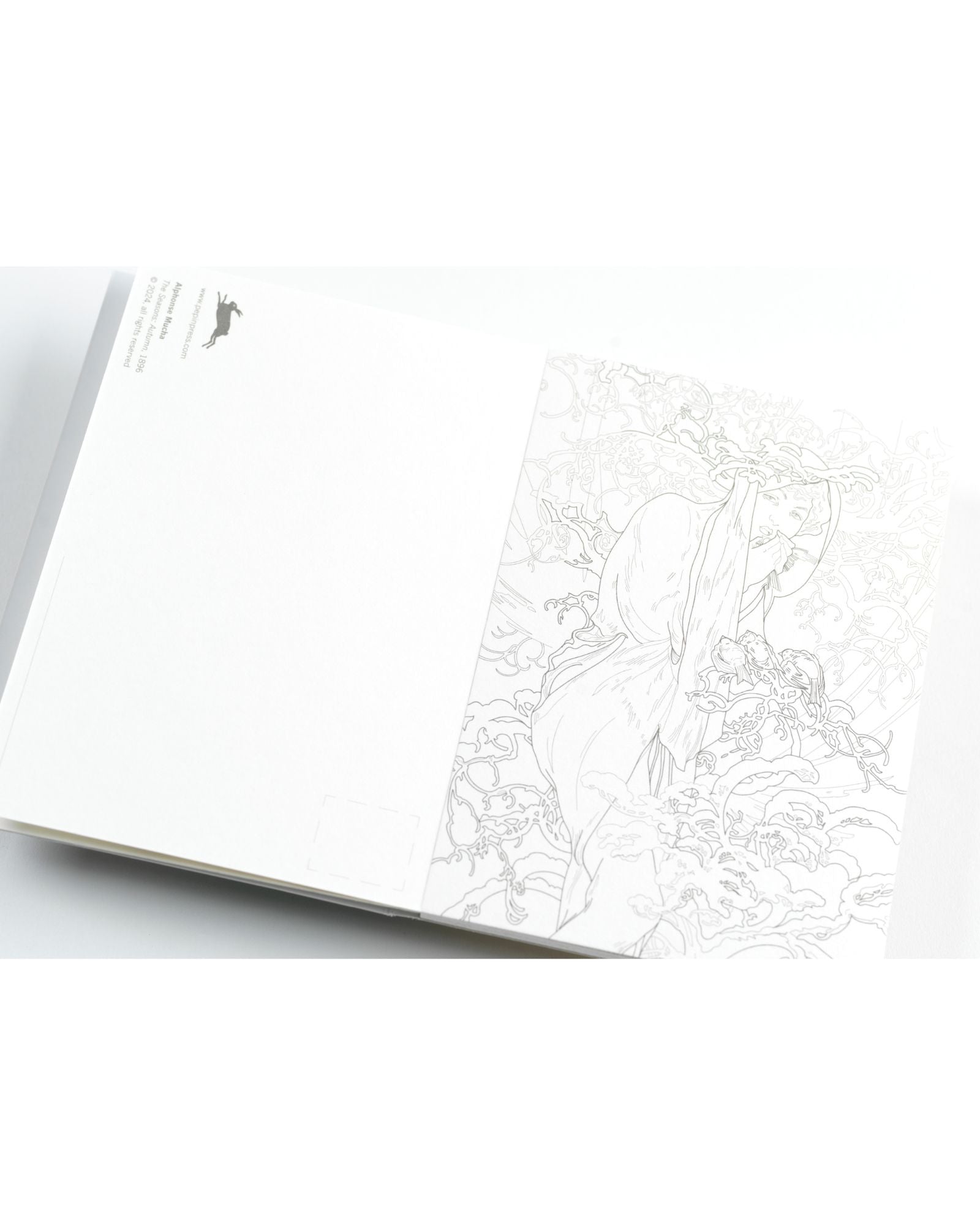 Create your own postcards in the style of Mucha! This high-quality, postcard-sized watercolor book contains 16 images to color, all inspired by Alphonse Mucha’s masterpieces. The thick watercolor paper is also suitable for coloring with markers, colored pencils, and wax crayons.