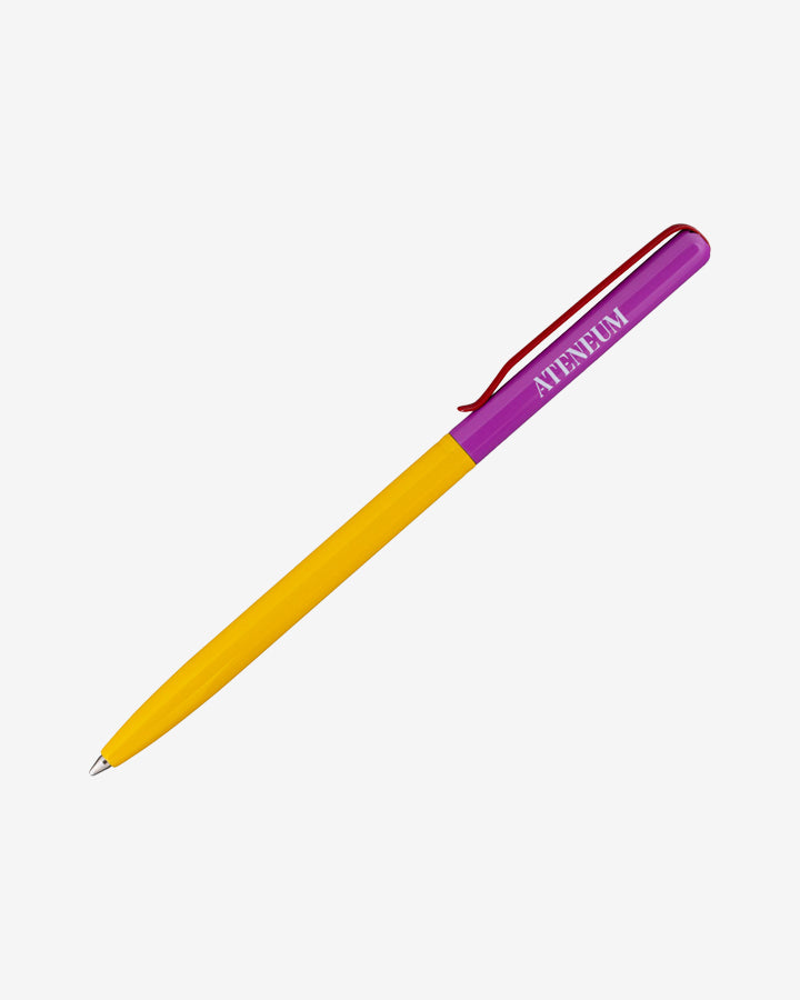 A pen as sweet as candy! Ateneum ballpoint pen features a delightful colour combination and a white Ateneum logo on the side. Its slim and compact design makes it easy to carry with you wherever you go.