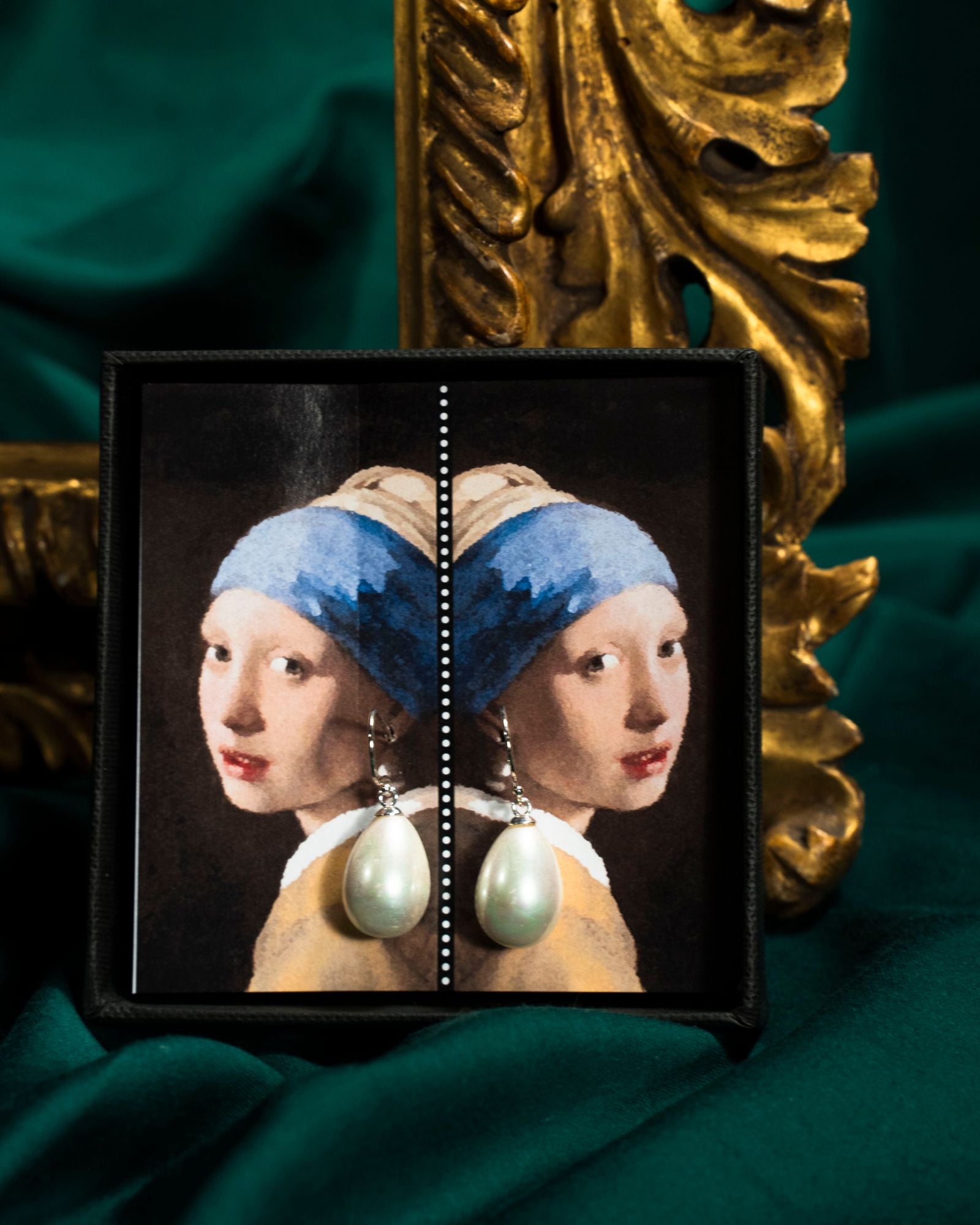 These elegant drop earrings are inspired by Johannes Vermeer’s masterpiece Girl with a Pearl Earring. Packed in a stylish gift box, the earrings feature sterling silver hooks.