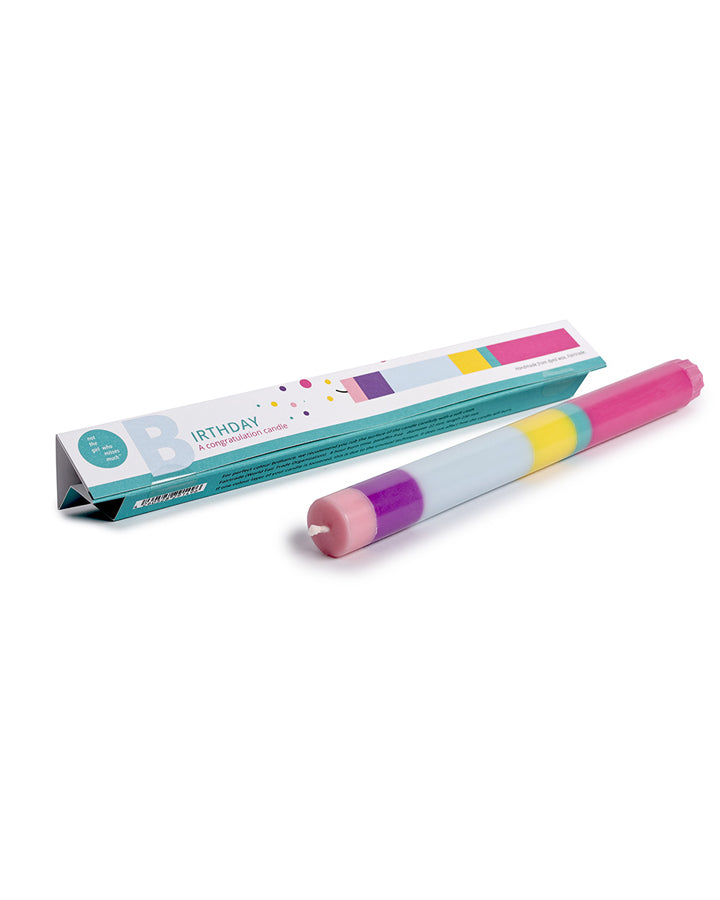 The Happy Birthday candles are handmade through a layering process in Indonesia. The company is part of the Fair Trade organization and seeks to help local women achieve independency through work.