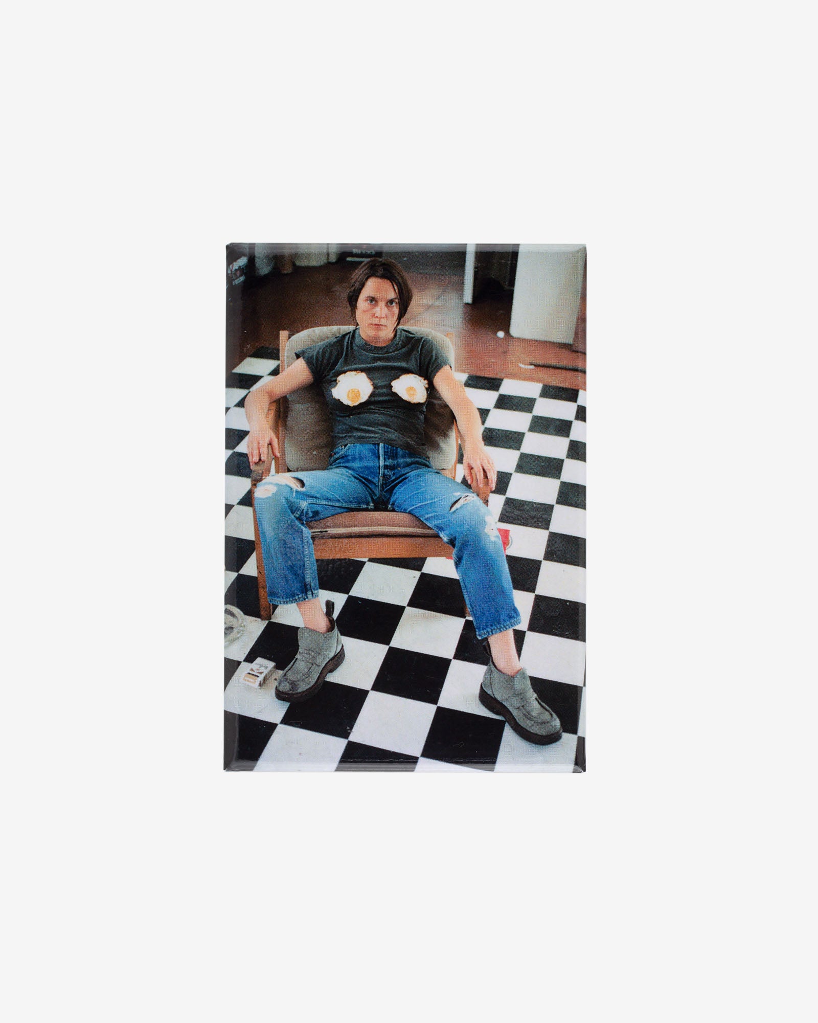 Surprise an art lover with a small gift or create your own gallery on the fridge door. This magnet features Self-Portrait with Fried Eggs by Sarah Lucas.