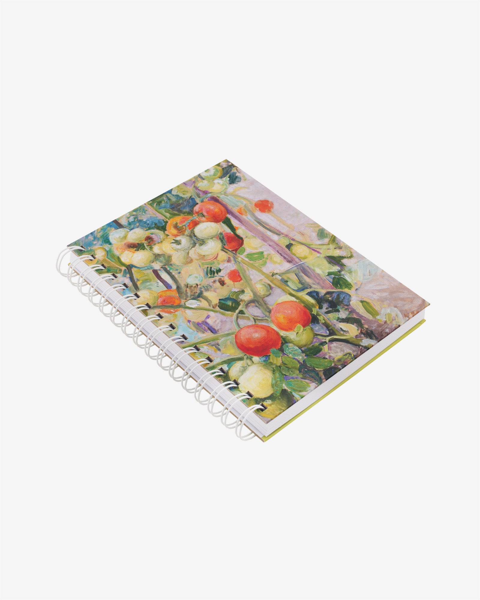 Tomatoes spiral notebook is perfect for storing recipes or keeping a gardener’s journal. The unlined pages, made from sturdy and smooth paper, provide an excellent surface for both notes and sketches. The hardcover features an image of Tomatoes by Pekka Halonen.
