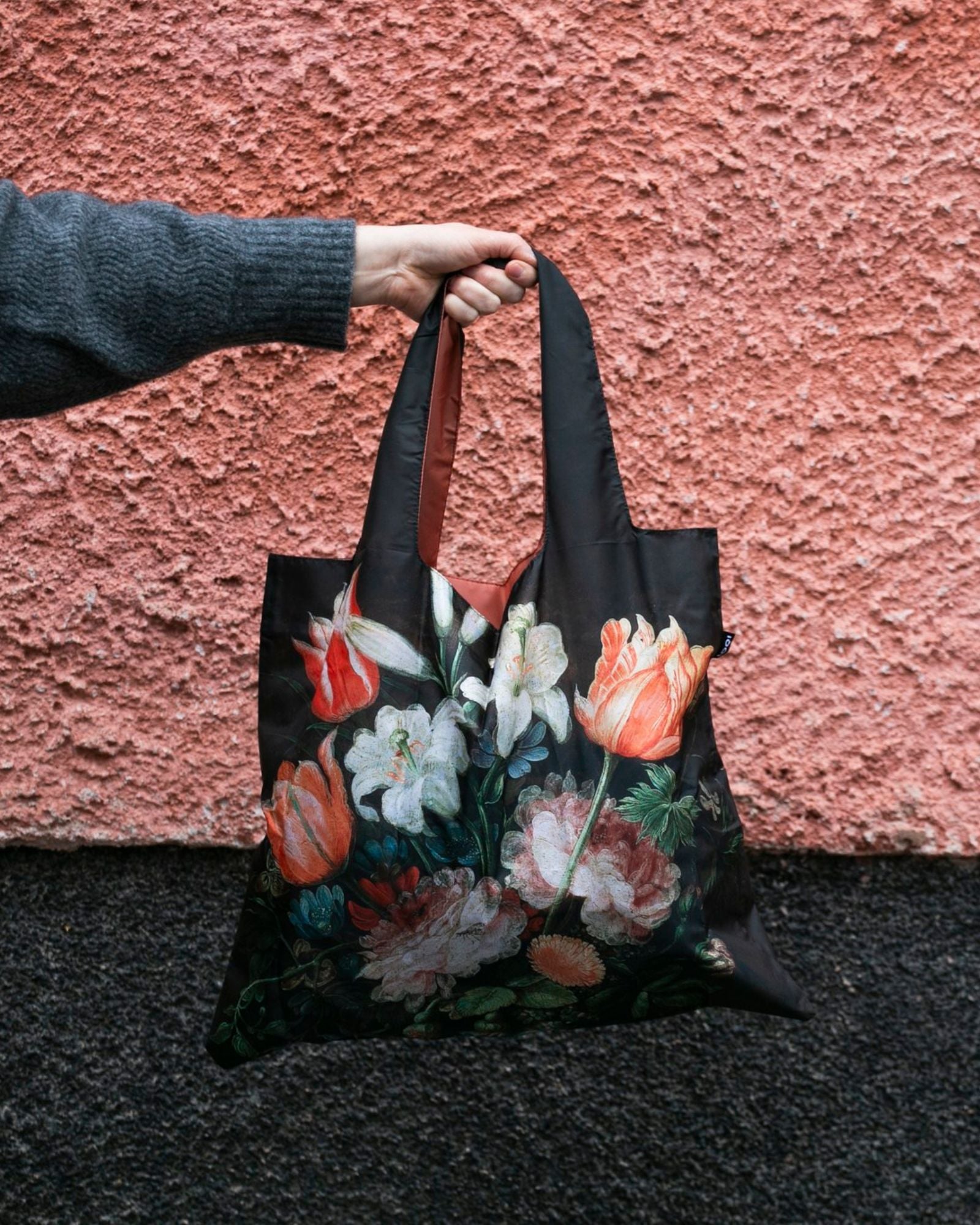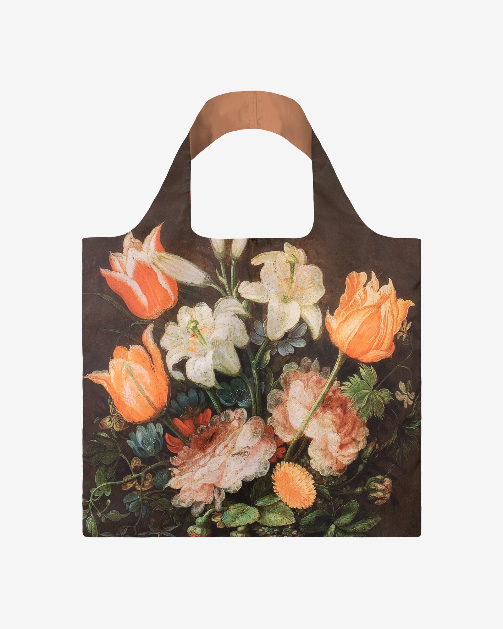 Practical and stylish, Loqi bags are water-resistant and can hold up to 20 kg. The bag comes neatly packed in a small pouch that fits conveniently in your handbag, backpack, or even your coat pocket. This bag features Vase with Flowers from Jan Brueghel I.