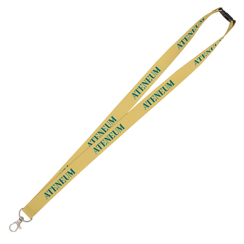 Pidä avaimet, kulkulätkä tai henkilökortti aina matkassa Ateneum-avainnauhassa! Kierrätysmuovipulloista valmistettu nauha on kestävä ja siinä on himmeä kiilto. Keltaisella pohjalla toistuu vihreä Ateneumin logo.