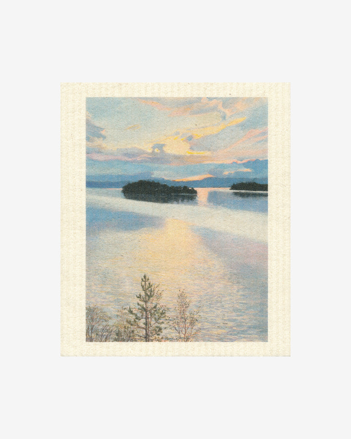 Piristä arkea ja siivouspäivää Järvimaisema-tiskirätillä! Ateneumin kokoelmien klassikot ilahduttavat ympäristöystävällisistä materiaaleista valmistetuissa tiskiräteissä, valitse sesonkiin ja kodin sävyihin sopiva. Teoskuva Akseli Gallen-Kallelan maalauksesta Järvimaisema on painettu tuotteeseen Suomessa.