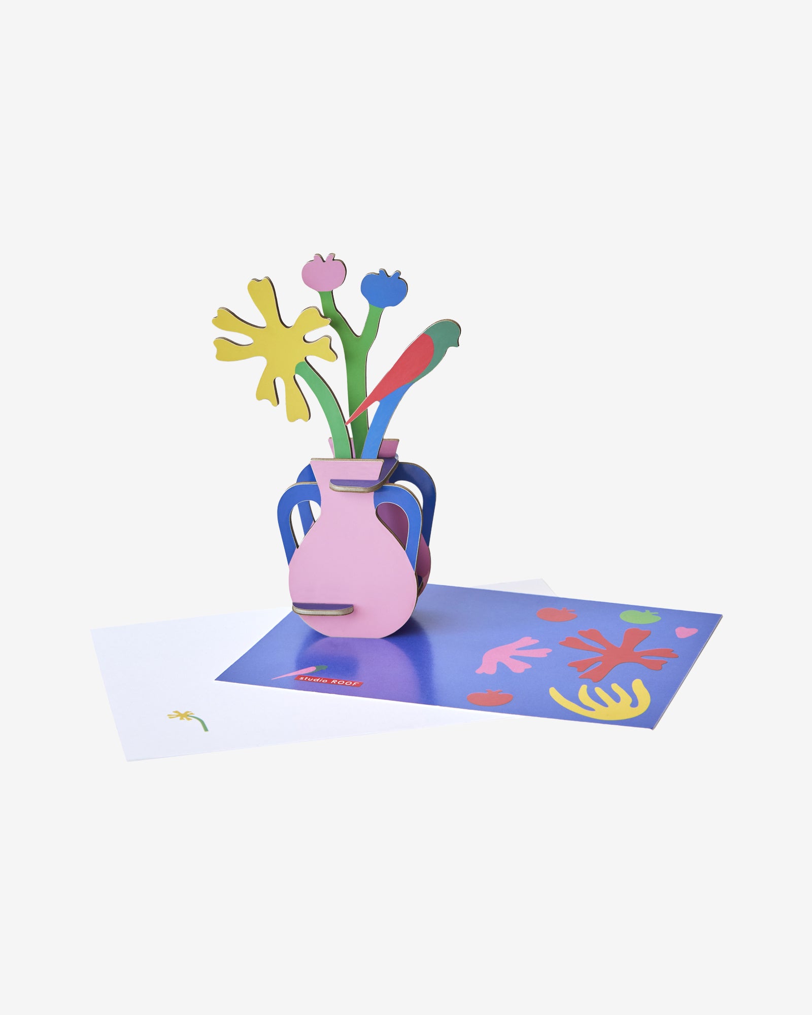 Yllätä ystävä Henri Matisse -kukkakortilla! Postitettava kortti sisältää koottavan ikikimpun, joka säilyy kauniina muistona löydettyään paikkansa hyllyltä, takanreunalta tai muualta kodista. Kukkien orgaaniset muodot ja värit ovat inspiroineet taiteilijoita kautta aikojen. Studio Roofin kolmiulotteisten kukkakimppujen innoituksen lähteenä ovat puolestaan toimineet tunnettujen taiteilijoiden mestariteokset. Paketti sisältää kirjekuoren, onnittelukortin sekä koottavan 3D-kukkakimpun.