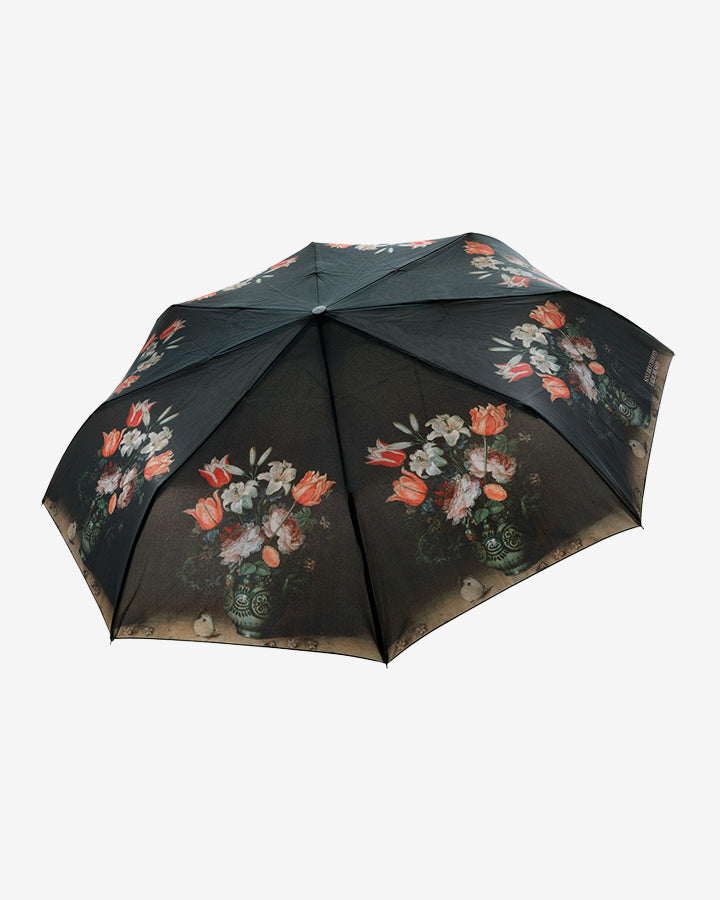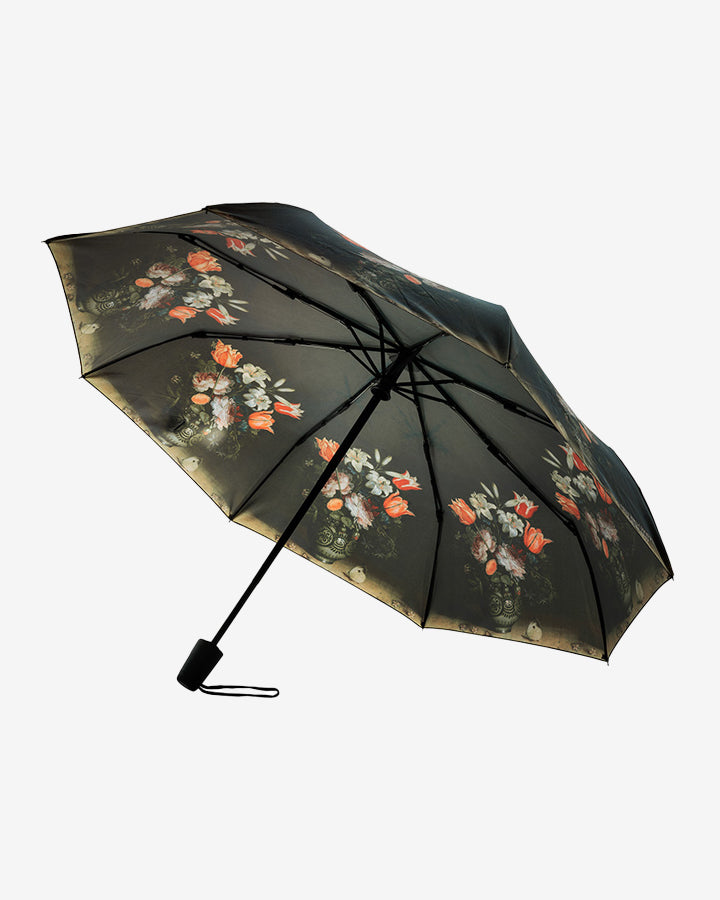 Varaudu sadesäähän kauniilla Kukkamaljakko-sateenvarjolla! Kokoontaitettava automaattisateenvarjo kulkee kätevästi matkassa suojapussiin pakattuna. Varjon kuosin innoitus on peräisin Jan Brueghel I:n maalauksesta Kukkamaljakko.